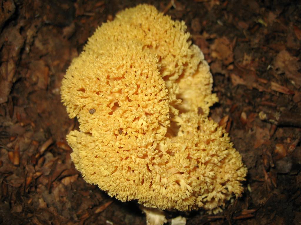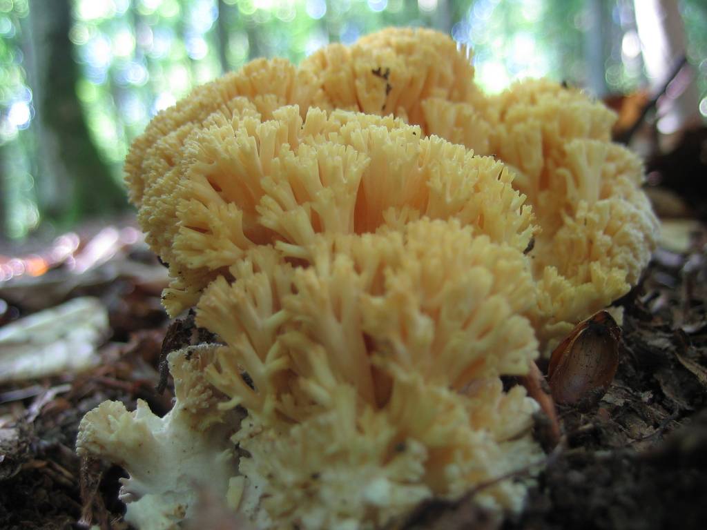 habe gestern im Wald diesen korallenartigen faustgrossen Pilz gefunden. Er ist weiss bis hellgelb und hat einen sehr festen Unterkoerper gehabt. Ich habe mal testweise ein Stueck abgebrochen, was gar nicht so leicht war, da das Fruchtfleisch auch sehr fest war aehnlich wie beim Blumenkohl. Der Geruch ist angenehm pilzartig, sehr wuerzig in Richtung Steinpilz gehend.