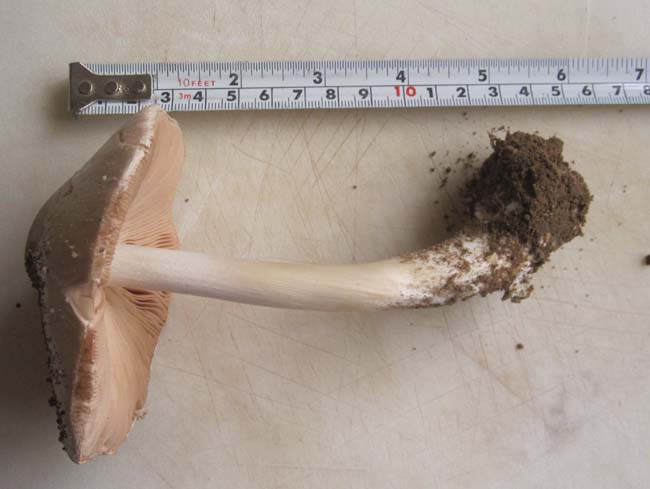 Kann es sein das Du ein wichtiges Merkmal dieses Pilzes im Boden stecken gelassen hast , hatten die Pilze denn keine lappige Scheide am Stielende ?