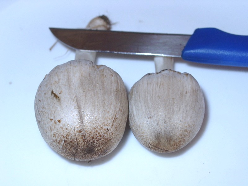 -> Beachte um das vielleicht nachvollziehen zu können den stark gerieften Hutrand sowie die gelbfleckende Stielbasis.