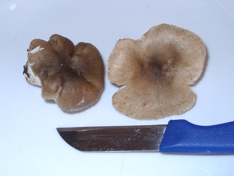 Da ändere ich meine Meinung, denn R. nigricans hat keinen so stark gerieften Rand. Ich denke jetzt an einen Täubling aus der Nähe von Russula pectinatoides (Kratzender Kamm-Täubling), vielleicht er selbst, vielleich aber auch R. insignis, der Milde Kamm-Täubling. Es wäre zu prüfen, ob der Geschmack mild, aber im Hals leicht kratzend oder gänzlich mild ist und ob an der Stielbasis rötliche Flecken vorhanden sind oder ob diese nur gelb gefärbt ist. Bitte auch den Geruch überprüfen. Hast du zufällig 10%ige KOH zur Verfügung?