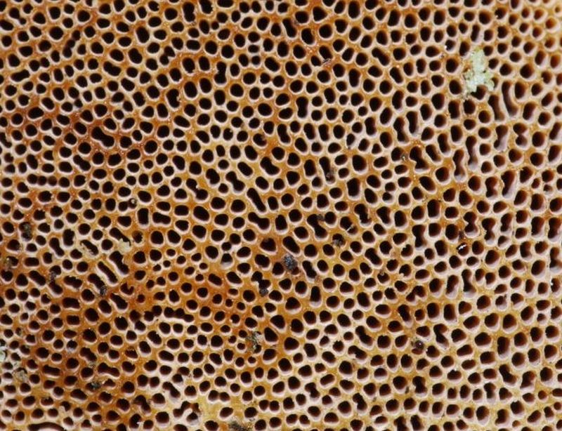 ich vermute, dass ich an einem abgestorbenen Weißdorn die Rötende Tramete Daedaleopsis confragosa gefunden habe. Die Fruchtkörper waren 5-15 cm groß, ihre Farbe ober- und unterseits dunkelbraun, mit einer deutlichen konzentrischen Zonierung. Etwas irritierend ist für mich die Sporen bildende Schicht mit mehr oder minder ausgeprägten Röhren. Die in der Literatur angegebene Ähnlichkeit mit dem Eichenwirrling war hierbei nicht auszumachen. Ich meine auch, auf dem Hymenium dunklere = rötende Stellen ausgemacht zu haben.