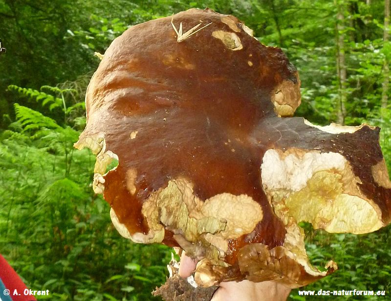 Dieser hatte einen Kappendurchmesser von 27 cm. Zu gebrauchen sind solch alte Pilze nicht mehr, so blieb er letzten Endes im Wald und sorgt hoffendlich noch für Nachwuchs ;)