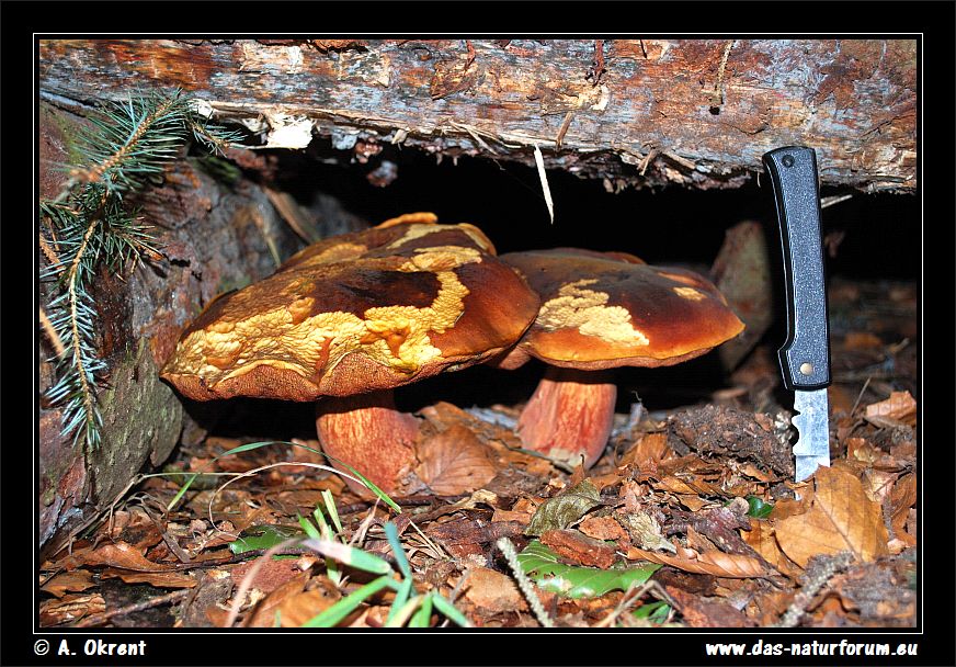 Gestern habe ich unter einem Holzstapel große, alte Flockenstielige Hexenröhrlinge entdeckt: