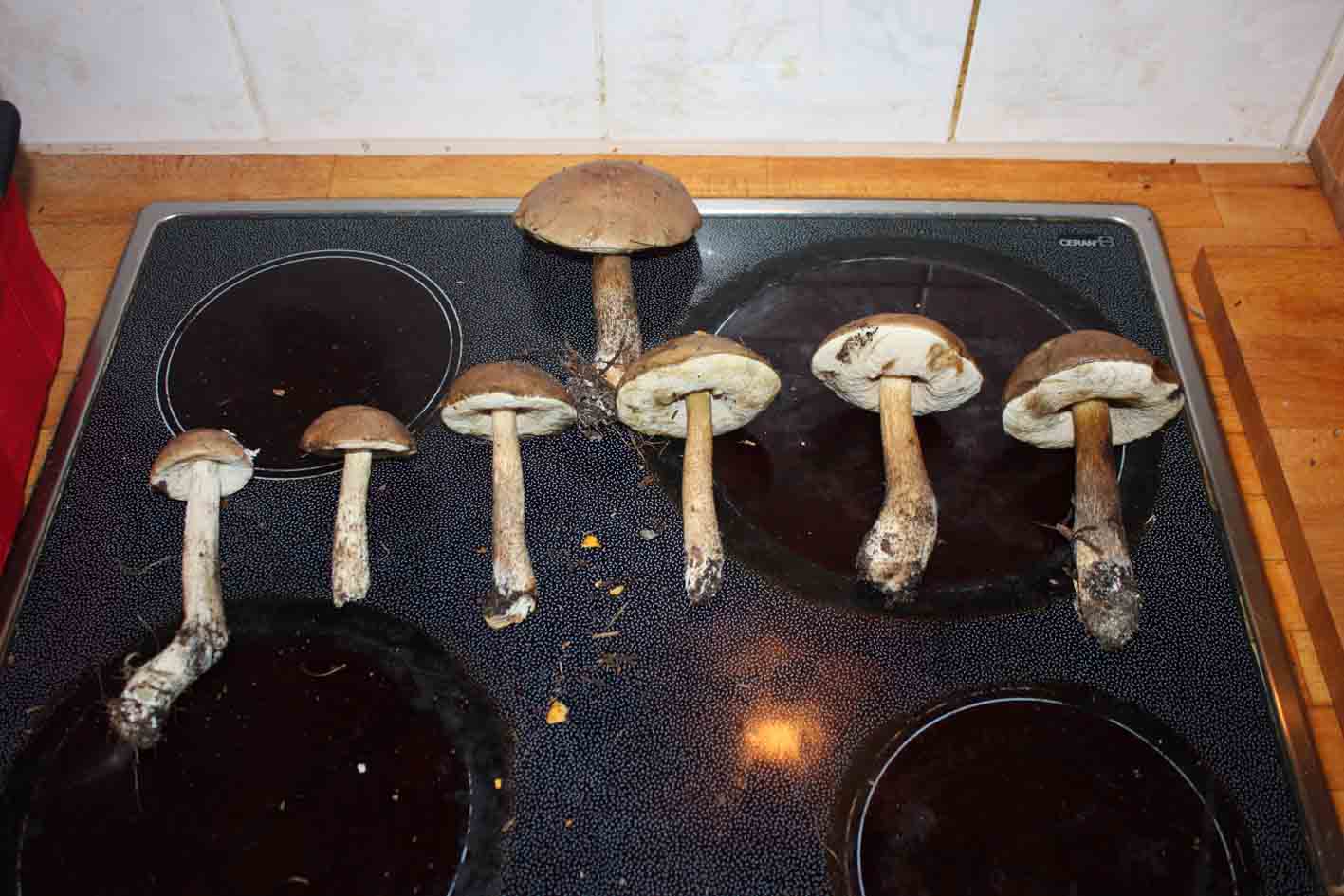 Pfiffis, Perlpilze, Steinpilz, Speisetäublinge, Birkenpilze, Ziegenlippe und ein schöner kräftiger Schampignon konnte ich kurz vorm dunkel werden auf einer offensichtlich schon besuchten Stelle, noch ernten.Dieses Zusammenstoppeln macht mir mehr Spass, als in einem Wald voll Steinpilzen nur einzusammeln, was auch mal vorkommt und ich dann natürlich auch kaum zu bremsen bin.
