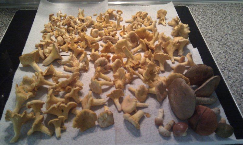 Ausbeute knapp 650 gr. Pfifferlinge und ein Steinpilz (wobei ich den gerad bestimmen lasse).