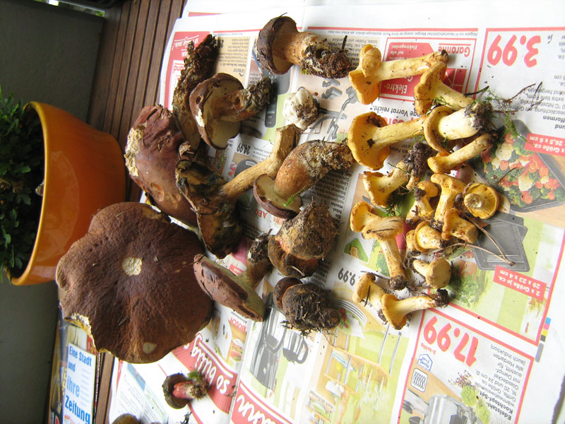 Nachdem ich zwei mal bis jetzt mit leerem Korb zurückgekommen bin, gabs heute die erste "Beute" und ein stattlicher "Steini" war auch dabei und kaum madig,verwurmt). Sogar Maronen lassen sich hier schon blicken (die eigentlich immer später erst zu finden sind und Pfifferlinge, Flockies.)