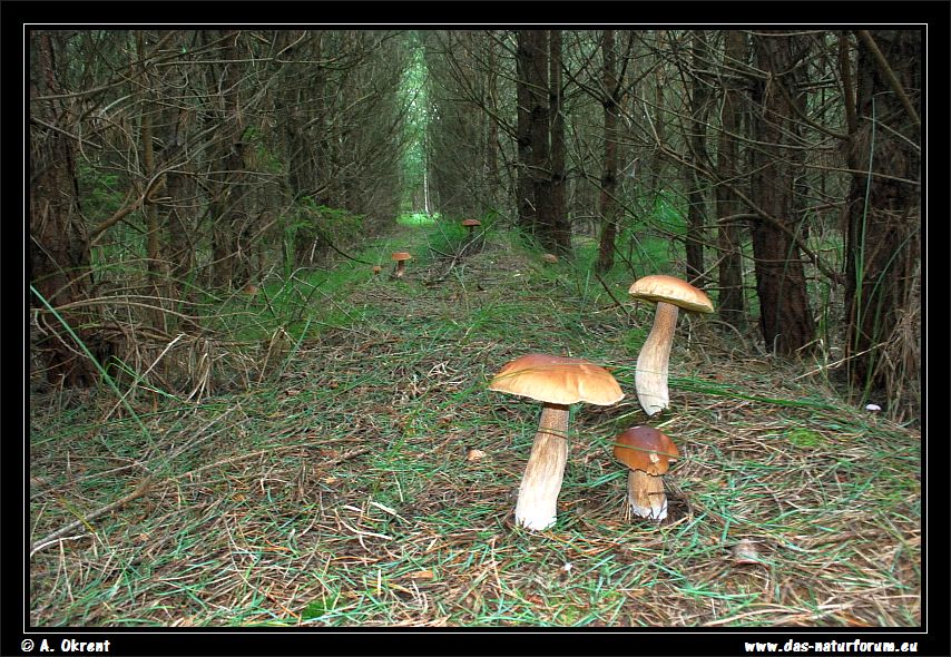 Heute war ich wieder in der Schonung unterwegs, neben zwei wunderschönen Kiefernsteinpilzen (B.pinophilus)