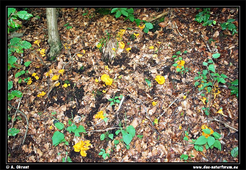 Bereits vor ein paar Tagen habe ich wieder meine Pfifferlingsstelle besucht. Ich berichtete vor einiger Zeit von einem großen Hexenring mit Pfifferlingen um einer Birke herum. Damals standen dort so viele Pfifferlinge das fast ein ganzer Beutel hätte voll werden können. Nun habe ich wieder einige große Nester vorgefunden - seht selbst: