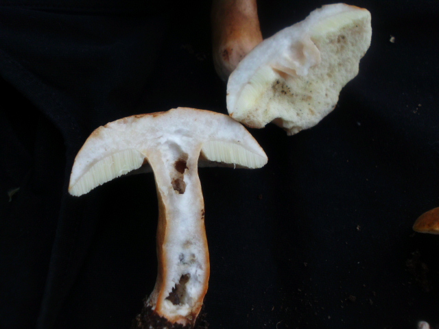 Sie wuchsen im lichten Buchenwald , sind hellbraun und blauen nicht beim anschneiden. Die Röhren sind fast weiß und der Stiehl ist lang und dünn. Kein erkennbares Netz am Stiehl. Riecht angenehm pilzig.