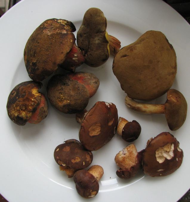 Ein paar Ziegenlippen, einige frühe Marönchen (hat da Einer "Babymord" gesagt?) und zur Krönung drei Flockis (mein Lieblingspilz). Perlpilze gb es auch reichlich, aber ich mag den Geschmack nicht so sehr und nehme sie nur, wenn ich sonst Nichts finde. Täublinge machen sich noch etwas rar.