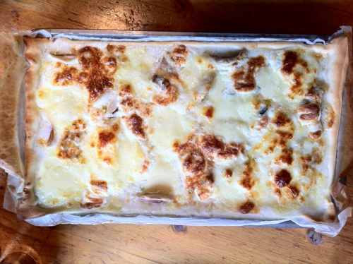 Für alle Nicht-Schwaben: Dinnete ist ein dünner, mit Sauerrahm, Speck und Zwiebeln belegter Teigfladen.