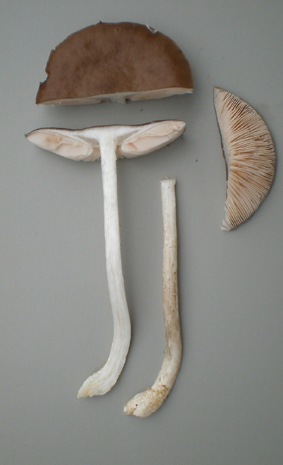Fredys Bestimmungsversuch ist ja nicht schlecht aber dabei hat er außer acht gelassen, das der Rehbraune Dachpilz (Pluteus cervinus) nach Rettich riecht. Ich denke daß es sich auch um einen Verschiedenfarbigen Dachpilz (Pluteus plautus) handeln könnte, der keinen besonderen Geruch hat. Eine eindeutige Klärung wird wohl erst der Blick unters scharfe Auge bringen.
