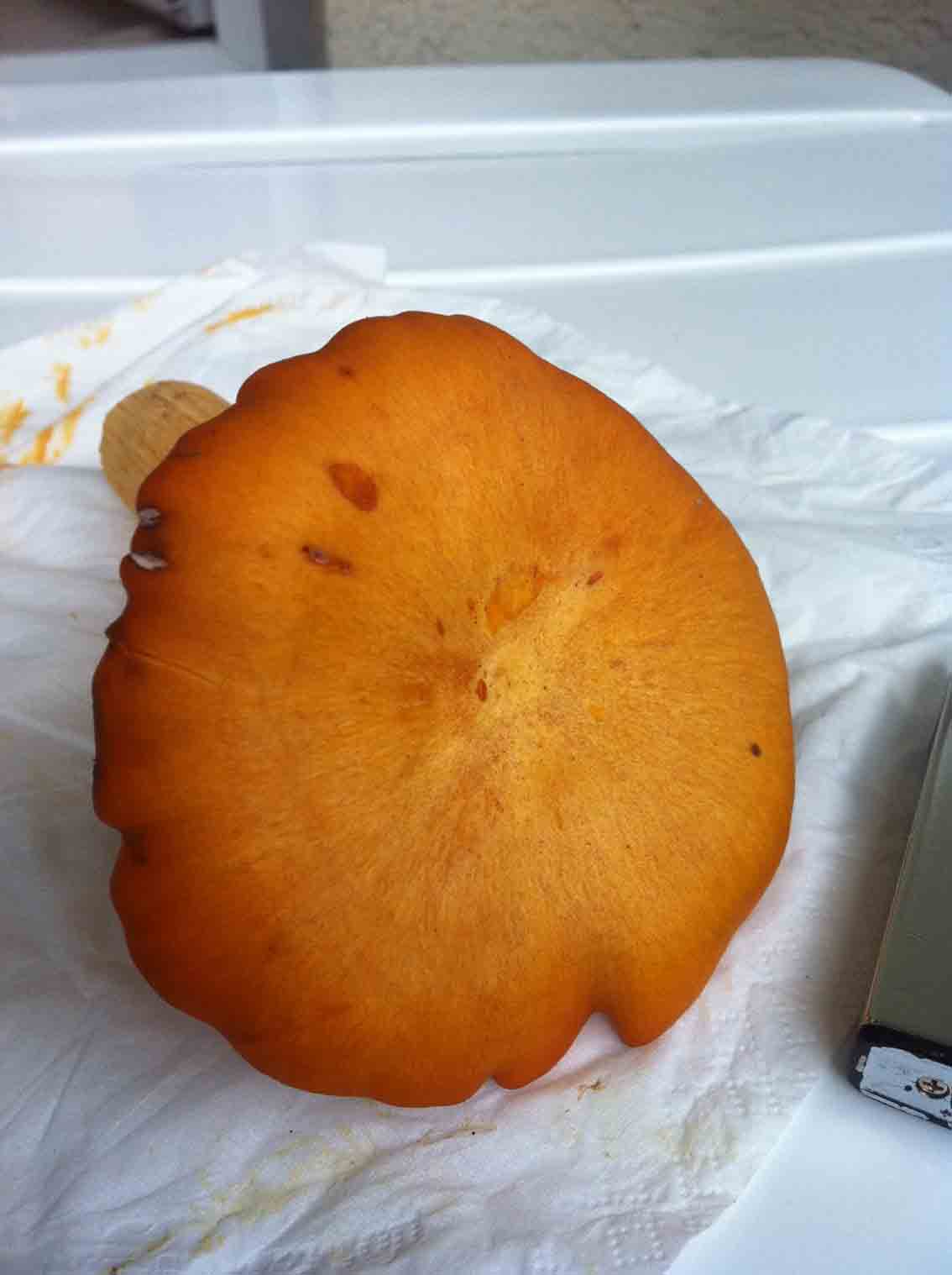 Zur "Abdichtung" dieser Bestimmung könnest Du den Pilz auf einem Stück weißen Papier aussporen lassen ---> Sporenfarbe gelb und (leider gibt's dazu kein Bild das Fleisch sollte im Schnitt ebenfalls gelb sein.
