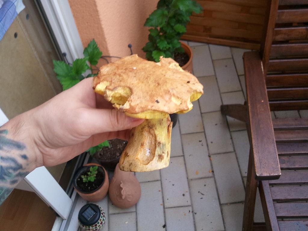 Er ist sehr schwer und ich vermute das es ein Steinpilz ist aber der Schwamm ist mir zu gelb!