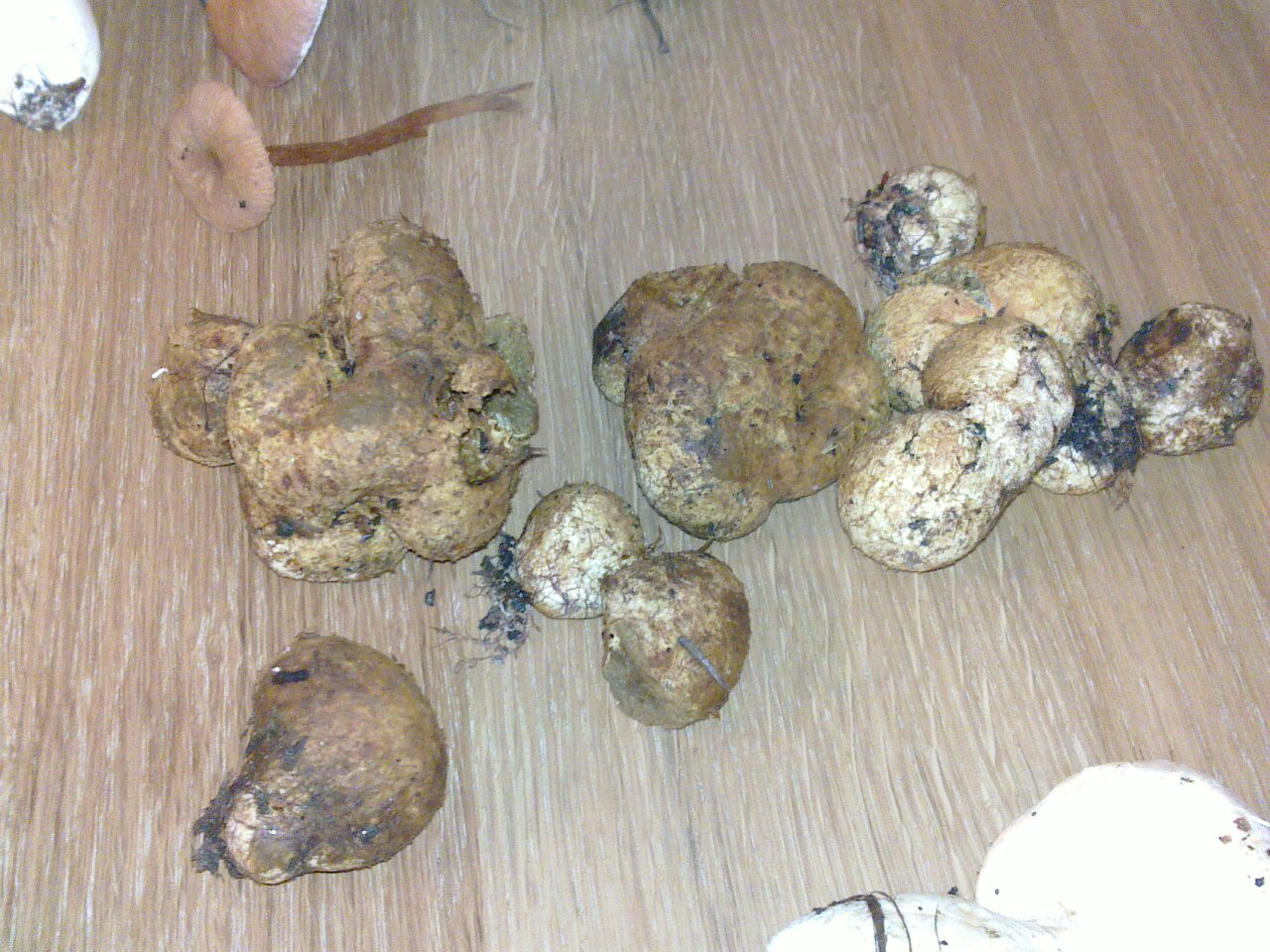 Dorniger Stachelbart ?, sehr sicher Buckeltäubling, die anderen Täublinge sind schwer zu bestimmen ohne Geschm.probe, Fuchsiger/ Verfärbender Scheidenstreifling?, Orangeroter Lärchenschneckling ?, Rotbrauner Milchling? , Egerling oder Knollenblätterpilz ( immmer zum Bestimmen gesamten Pilz herausdrehen und auf Scheide usw. achten )???, Kortoffelboviste ( warum so viele von denen, wenn du unsicher bist ??), Waldfreundrübling?, Bild 7 in der Mitte die Drei sehr verdächtig ( Rißpilze? ), Bild 8 Trüffel - habe da aber überhaupt keine Erfahrungen !!??,
