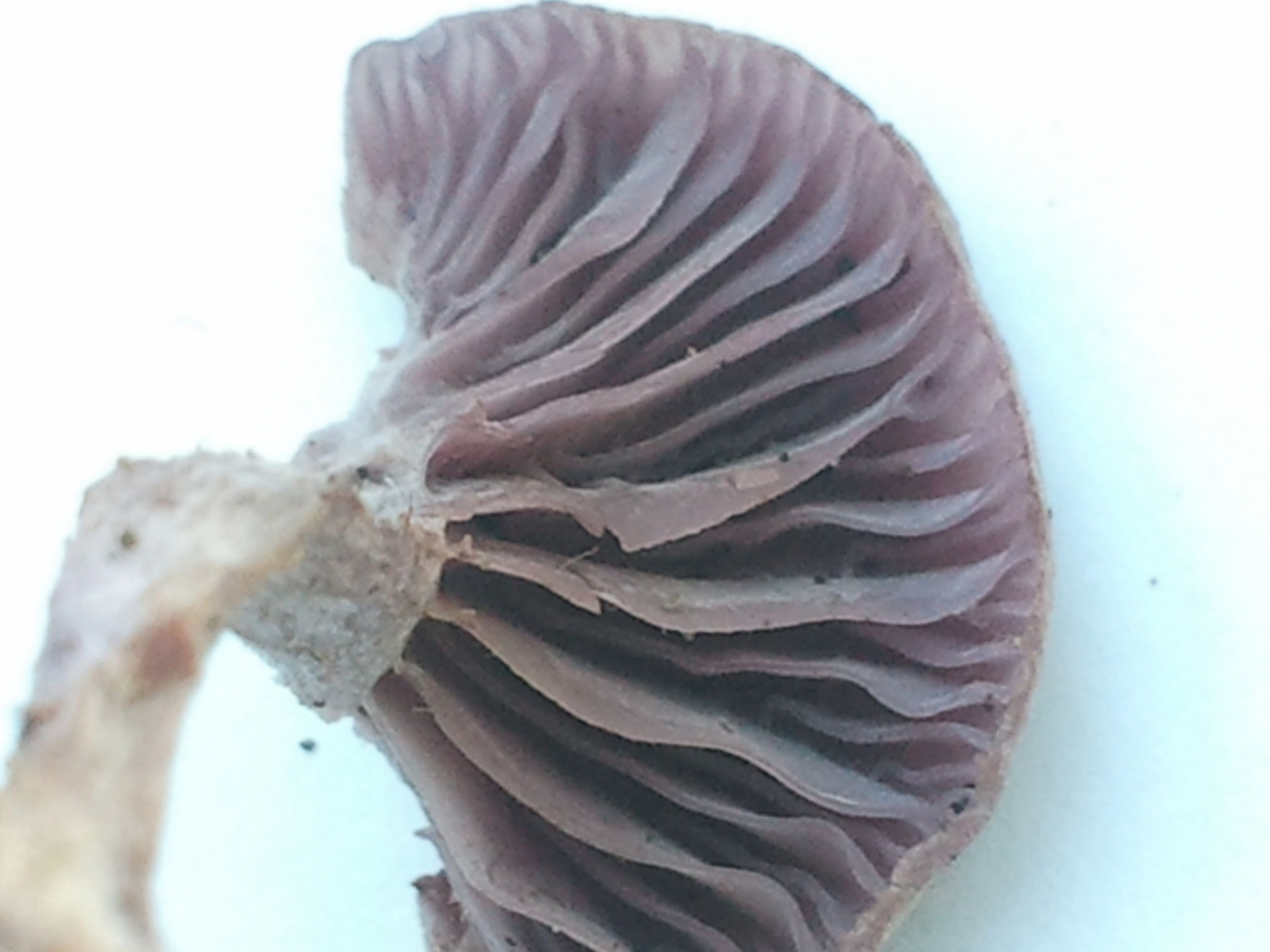 wuchs in großer Menge unter dem Schutz vieler junger (ca. 1m hoher) Fichten auf moosigem Boden; der ganze Fruchtkörper ist kräftig lila gefärbt