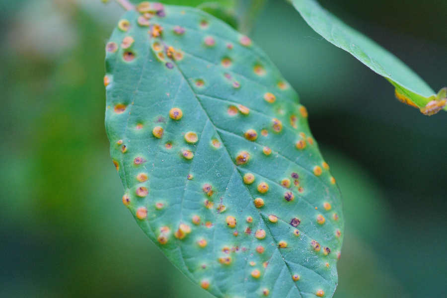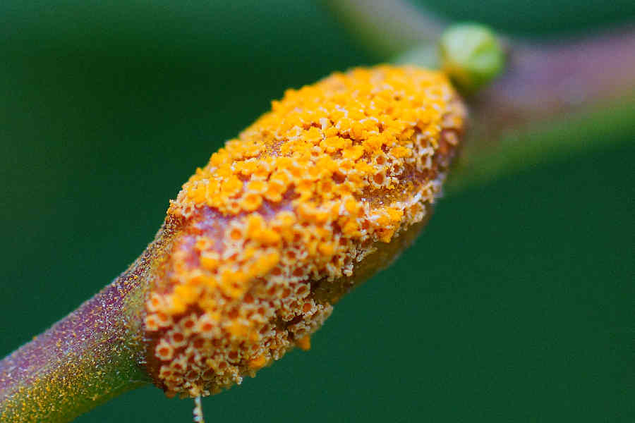 am 04.06.2014 fand ich in einem Laubwald bei 63571 Gelnhausen einen total verpilzten Hartriegelbusch, an dem sowohl die Blätter als auch Zweige befallen waren. Andere Büsche und Pflanzen in der Umgebung zeigten keinen Befall. Vom Aussehen besteht Ähnlichkeit mit Puccinia urticata (??).