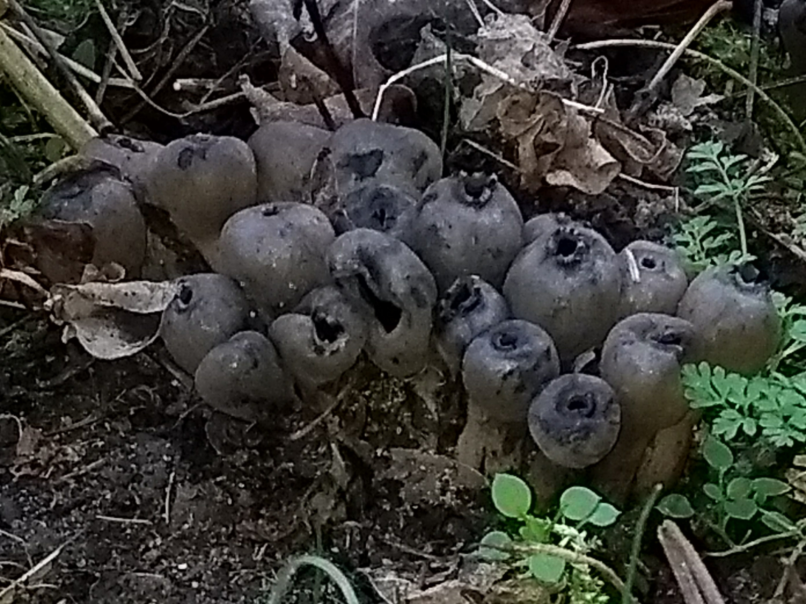 Und da waren sie an einer uns zwar schon lange bekannten Stelle, schon sehr schön eintwickelt und in großer Zahl:Urnula craterium - der Schwarze Kelchbecherling