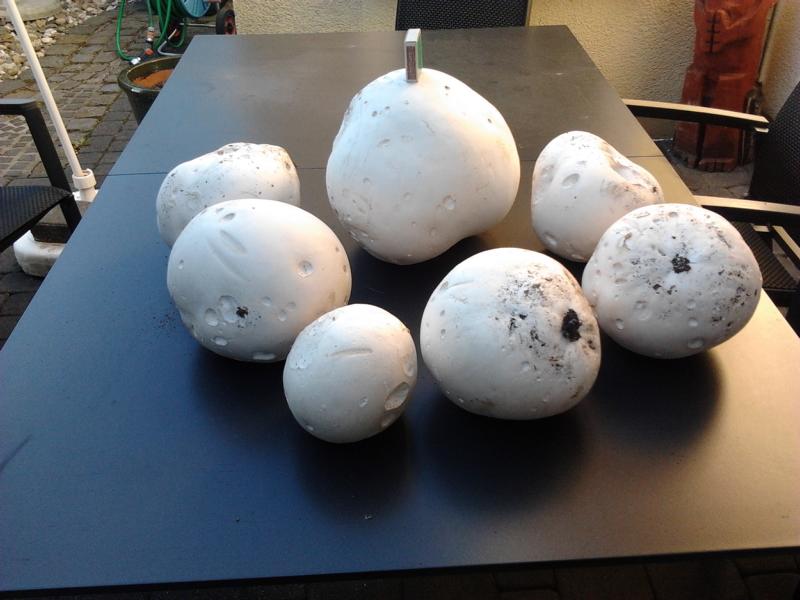 Nachdem Dortmund durch schlechtes Marketing den Titel "Pilshauptstadt Deutschlands" verzockt hat, sollten wir es mal mit "Pilzhauptstadt" probieren. Ausbeute von heute Morgen: 2 Kilo Riesenboviste in 2 Minuten! Und den größten mit ca. 1 Kilo Gewicht sowie etliche Kleinere habe ich stehen gelassen. An der Stelle fahren jeden Tag ca. 10.000 Autos vorbei. Guckt da keiner aus dem Fenster, kennen die alle keine Pilze oder pflückt keiner Pilze am Straßenrand?