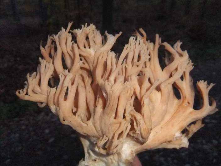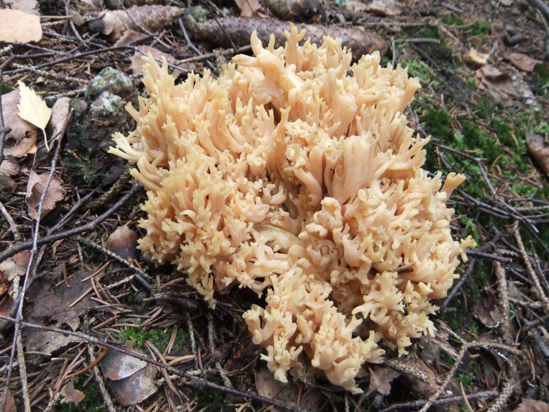 Nach genauerer Betrachtung und stöbern in verschiedenen Pilzbücher ist dieser Pilz sehr wahrscheinlich ein Hahnenkamm oder auch Bärentatze genannt. Der Lateinische Name ist Ramaria botrytis. Der Pilz riecht sehr aromatisch, nicht abstoßend oder widerlich. Der Pilz ist etwa 20 cm breit, 22 cm hoch und 8 cm tief.