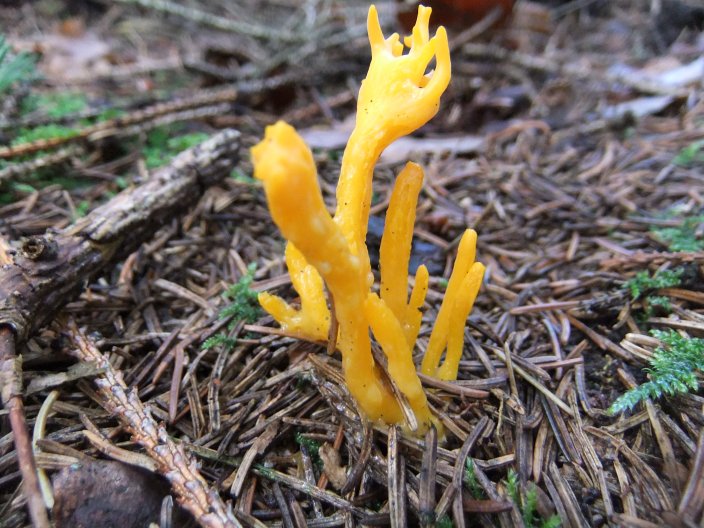 Vielen Dank Ralf, es könnte sich wirklich um den klebrigen Hörnling drehen, falls ich nächste Woche diese Stelle nochmals ausfindig machen sollte, werde ich noch einmal ein neues Foto von dem Pilz machen, vorausgesetzt er existiert noch und ist zudem auch noch gewachsen. Werde ihn dann anfassen und feststellen ob er zerbrechlich ist.