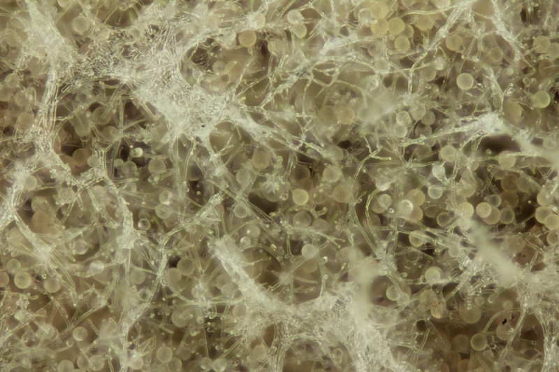 Moose bilden niemals Hyphen aus und schon gar nicht braune-schwarze Formen ohne irgendwelche Chloroplasten.