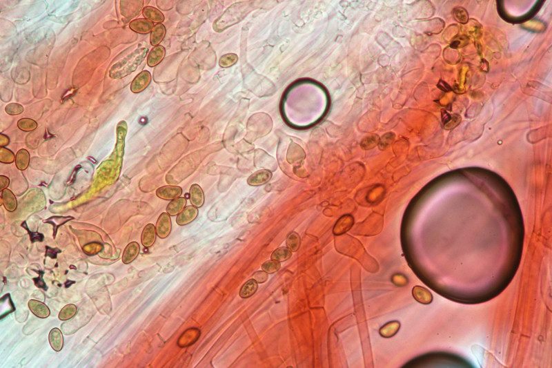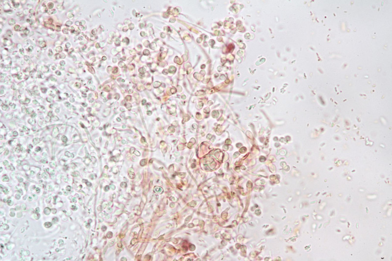 In diesem Gebiet war der Pilz massenweise vorhanden und anfangs dachte ich an Galerina, aber das Mikroskop hat etwas anderes gesagt.