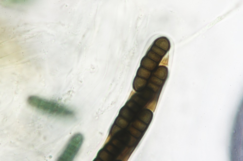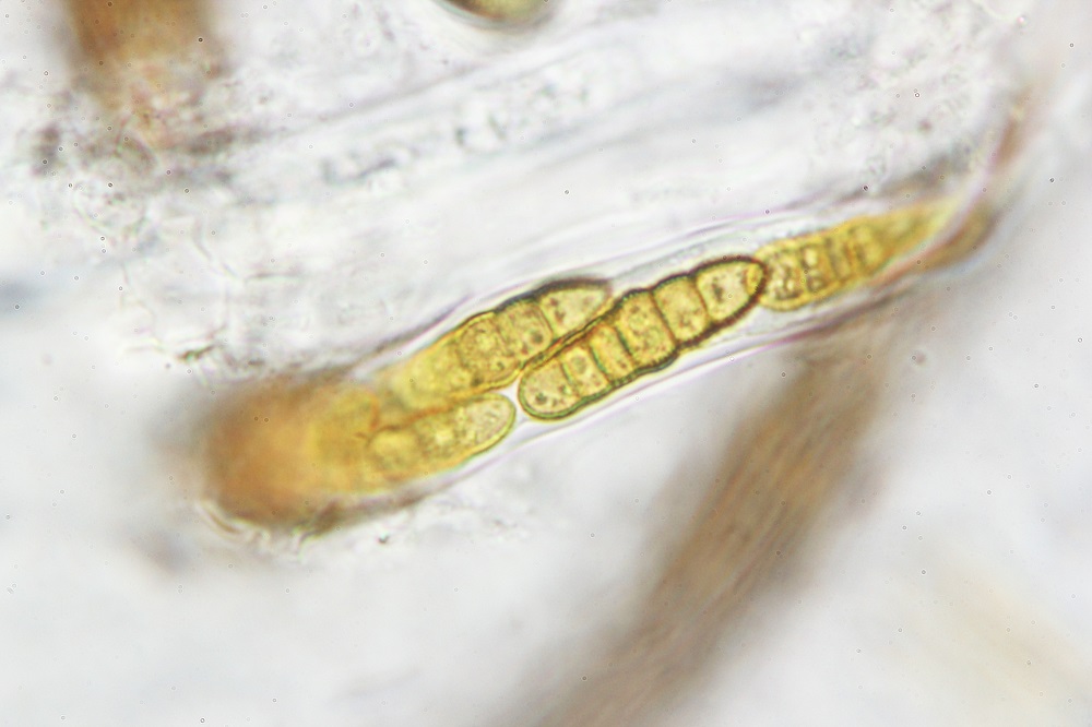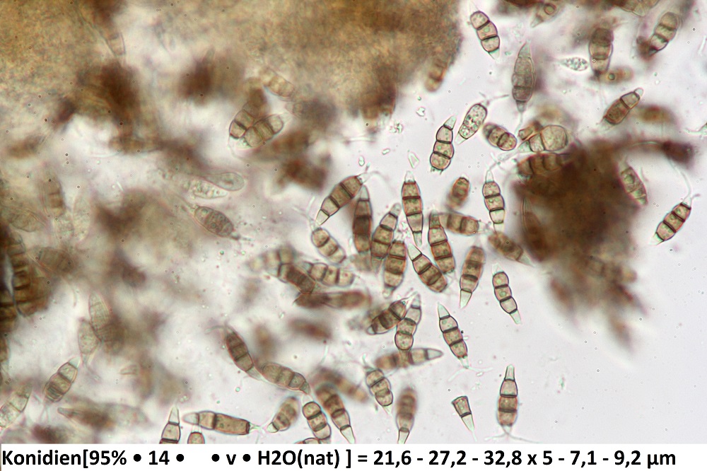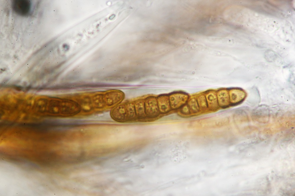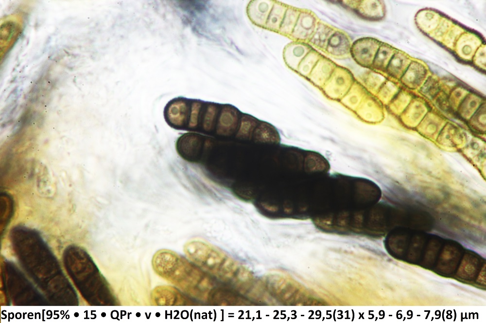 Die ockergelben Sporen sind 5-Fach Septiert und die unreifen 2-3-Fach Septiert (wurde nur kurz beobachtet und weiter bearbeitet).
