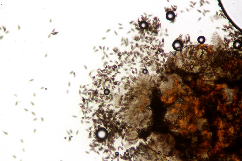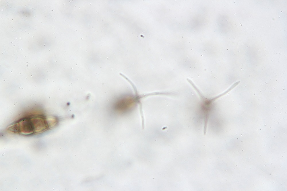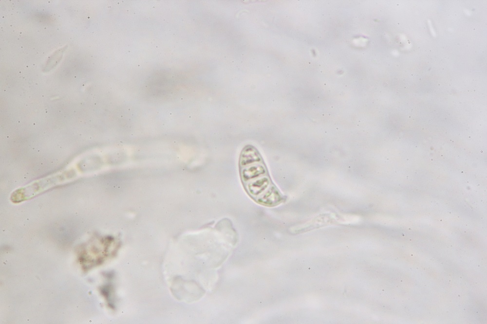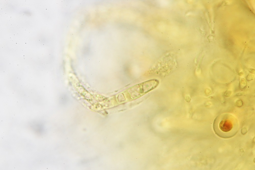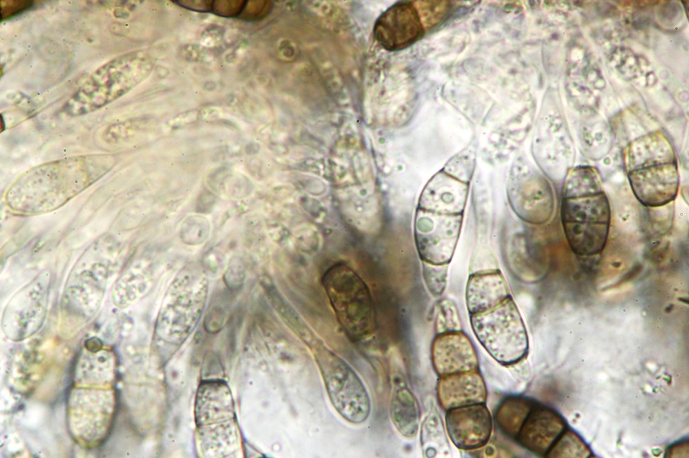 Die ockergelben Sporen sind 5-Fach Septiert und die unreifen 2-3-Fach Septiert (wurde nur kurz beobachtet und weiter bearbeitet).