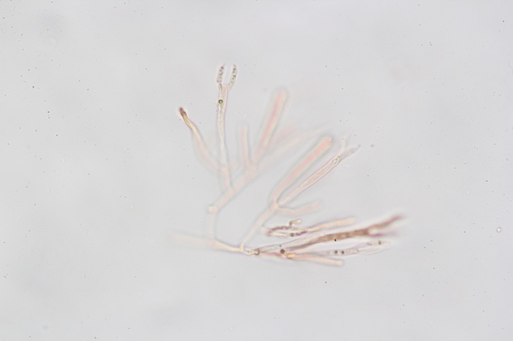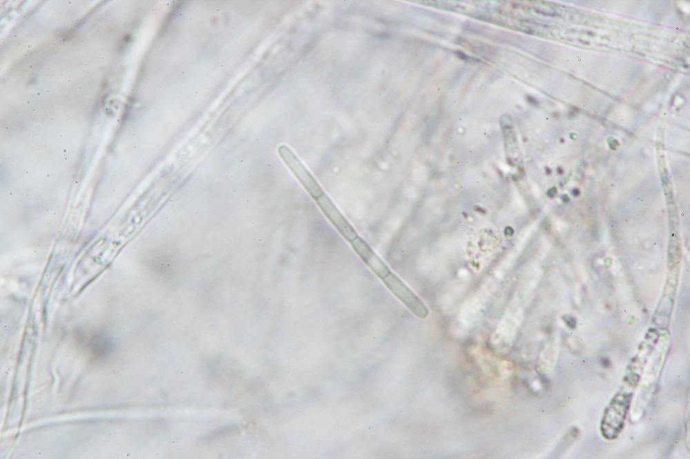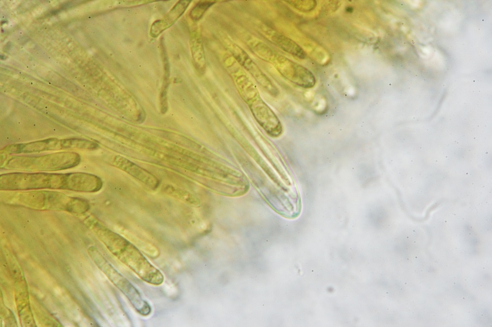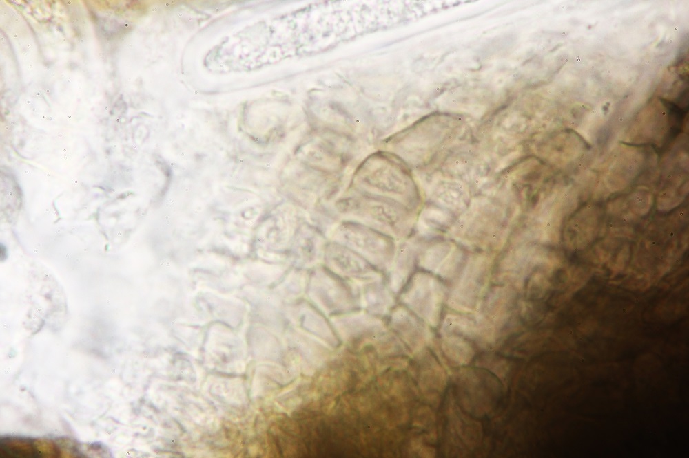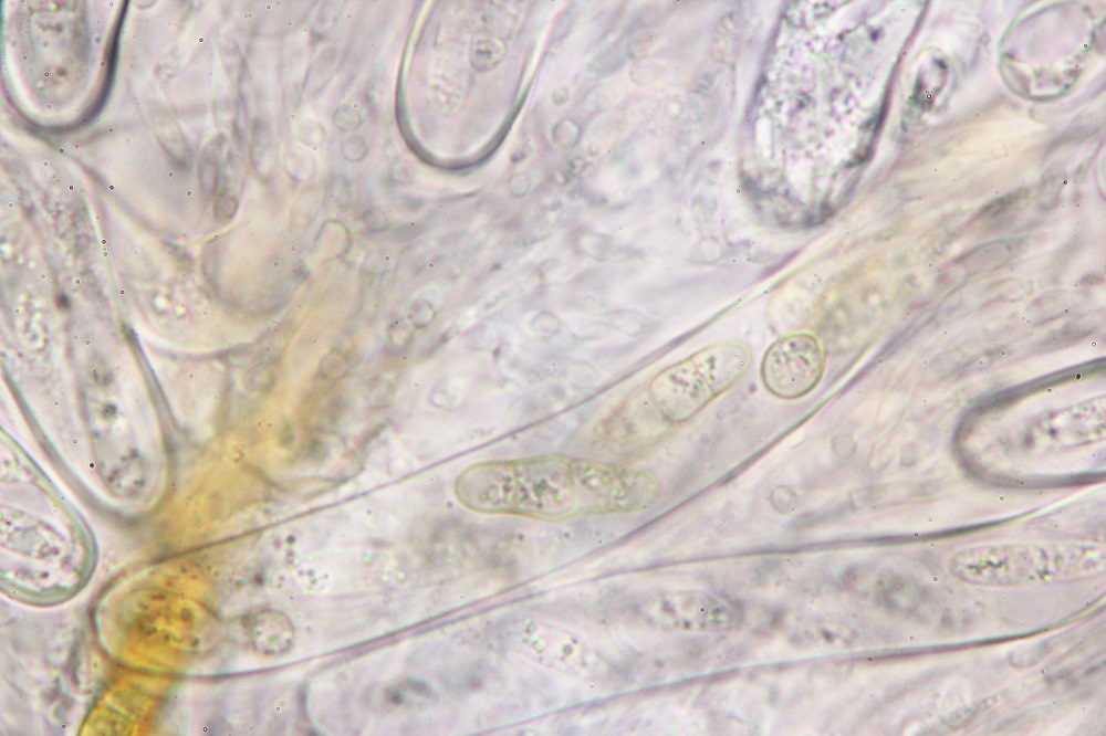 10. Reaktion in Melzer. Die braunen Sporen verfärben sich nicht und wenn dann nur ganz leicht und nicht erkennbar.