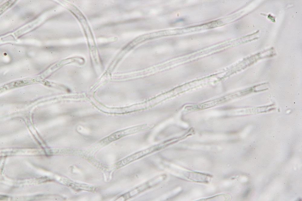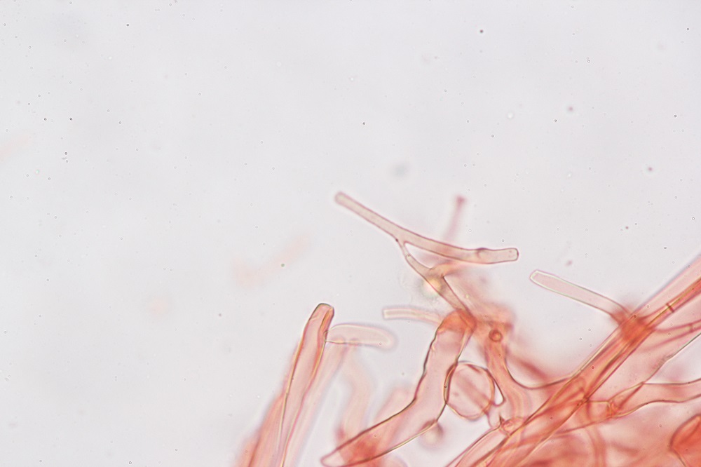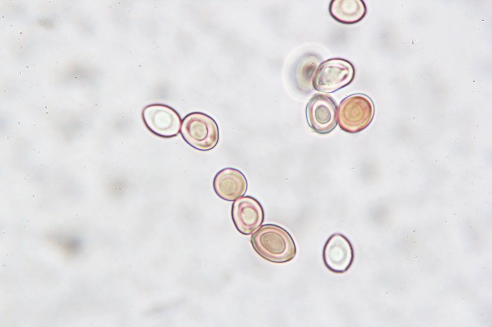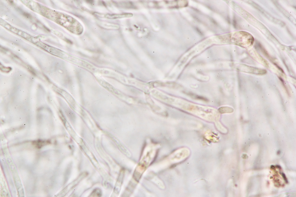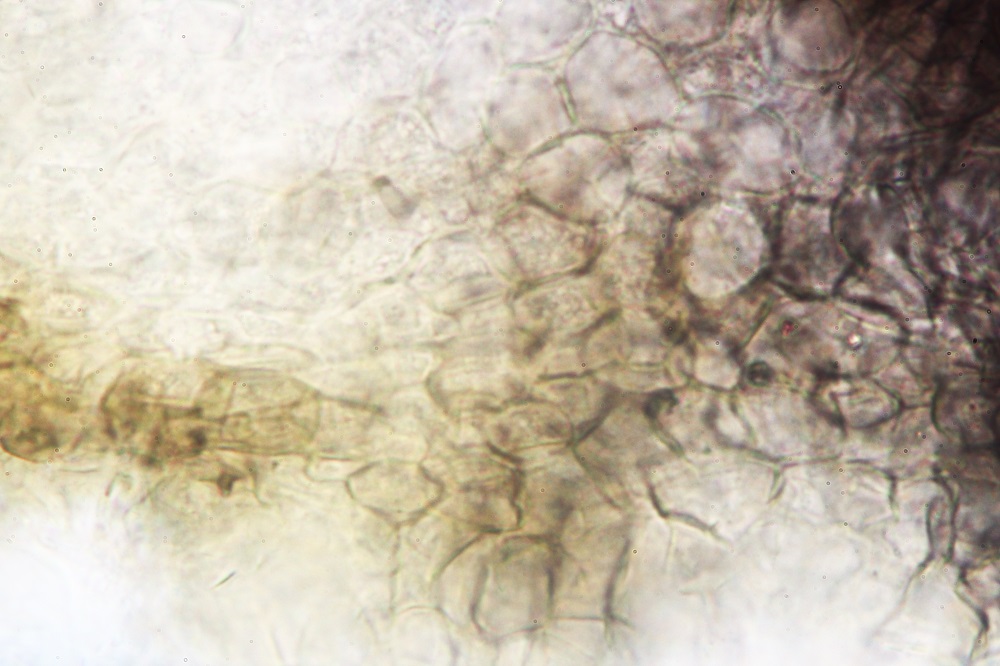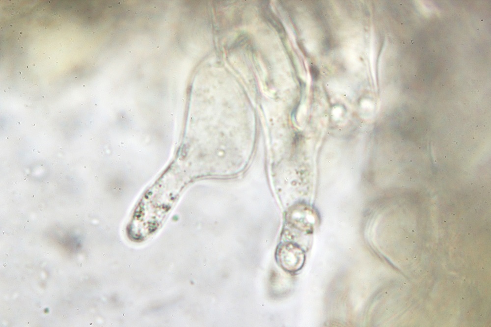 10. Reaktion in Melzer. Die braunen Sporen verfärben sich nicht und wenn dann nur ganz leicht und nicht erkennbar.