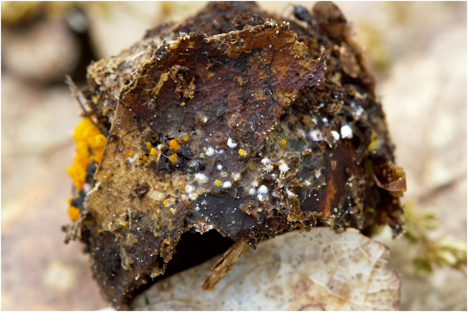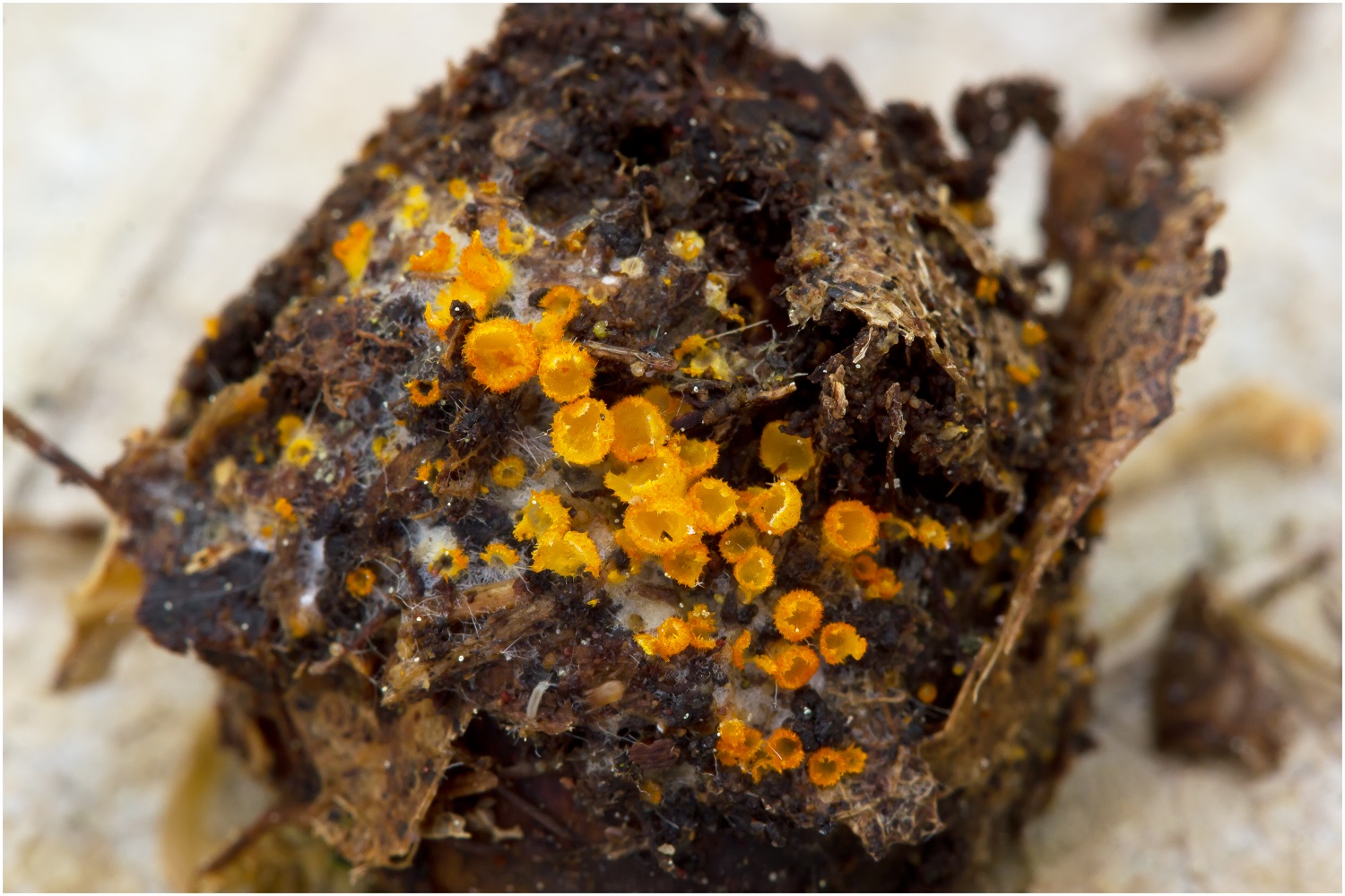 gestern konnte ich zum ersten mal Arachnopeziza aurelia auf Eicheln finden.