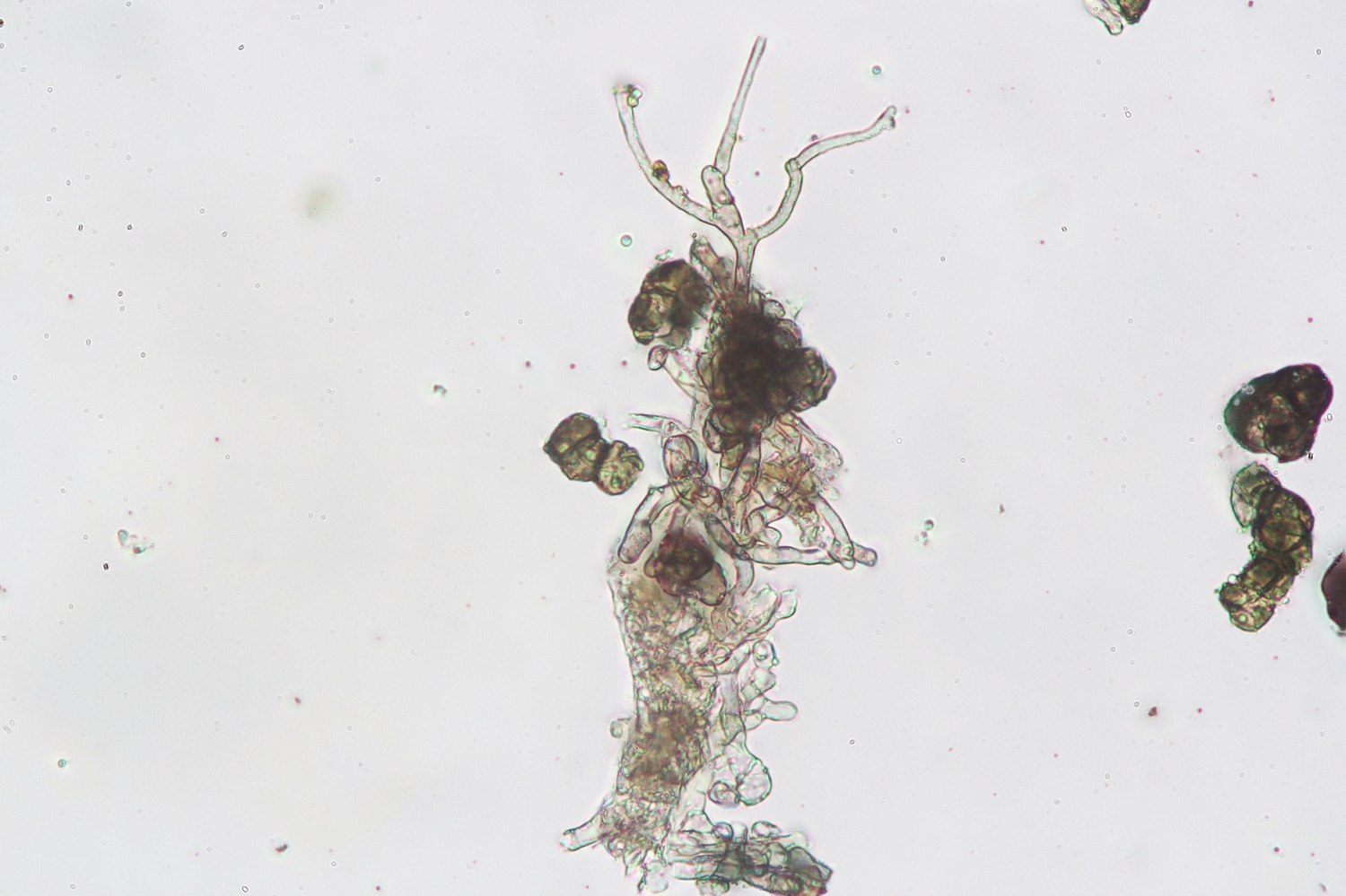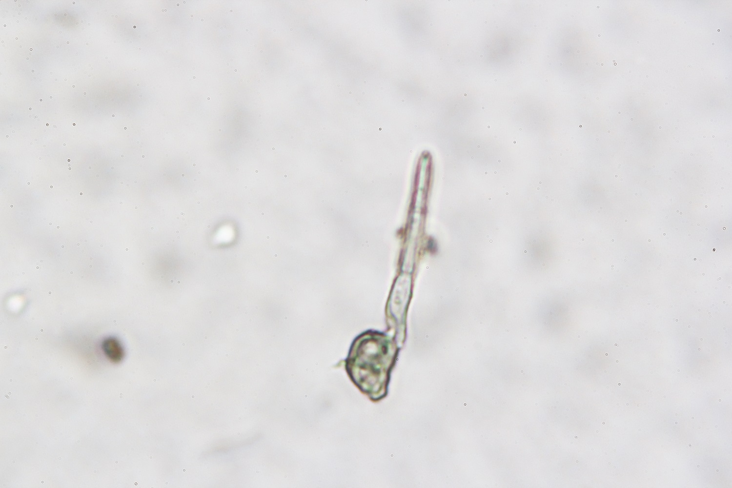 7. Anhängsel um die oft über 10 Mikrometer lang. Aufgenommen wurde in KOH 20%, damit die Anhängsel besser sichtbar wurden.