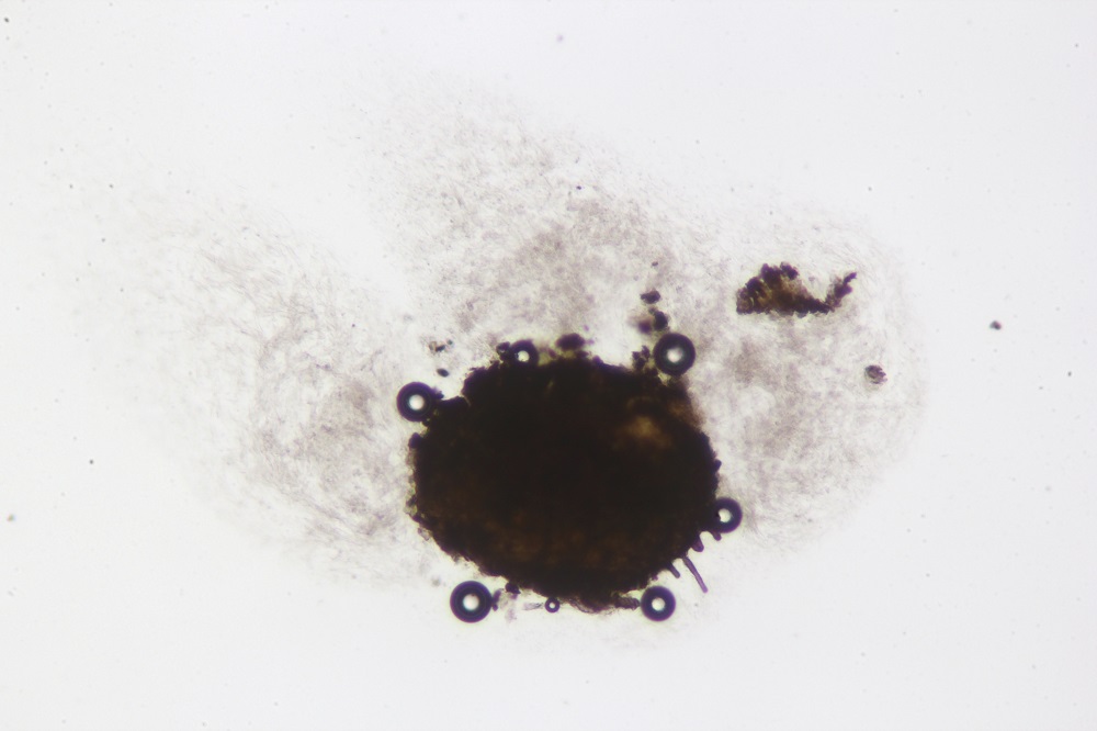 Ich vermute das es ein Zygomycet ist, eventuell eine unreife Endogone sp., aber sicher bin ich mir da nicht.