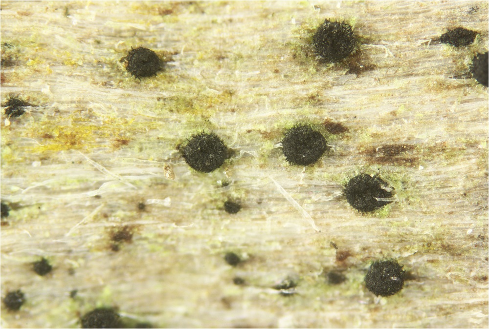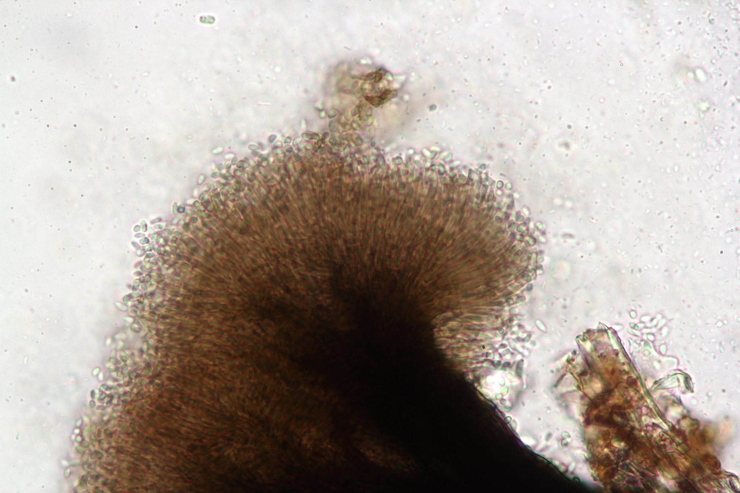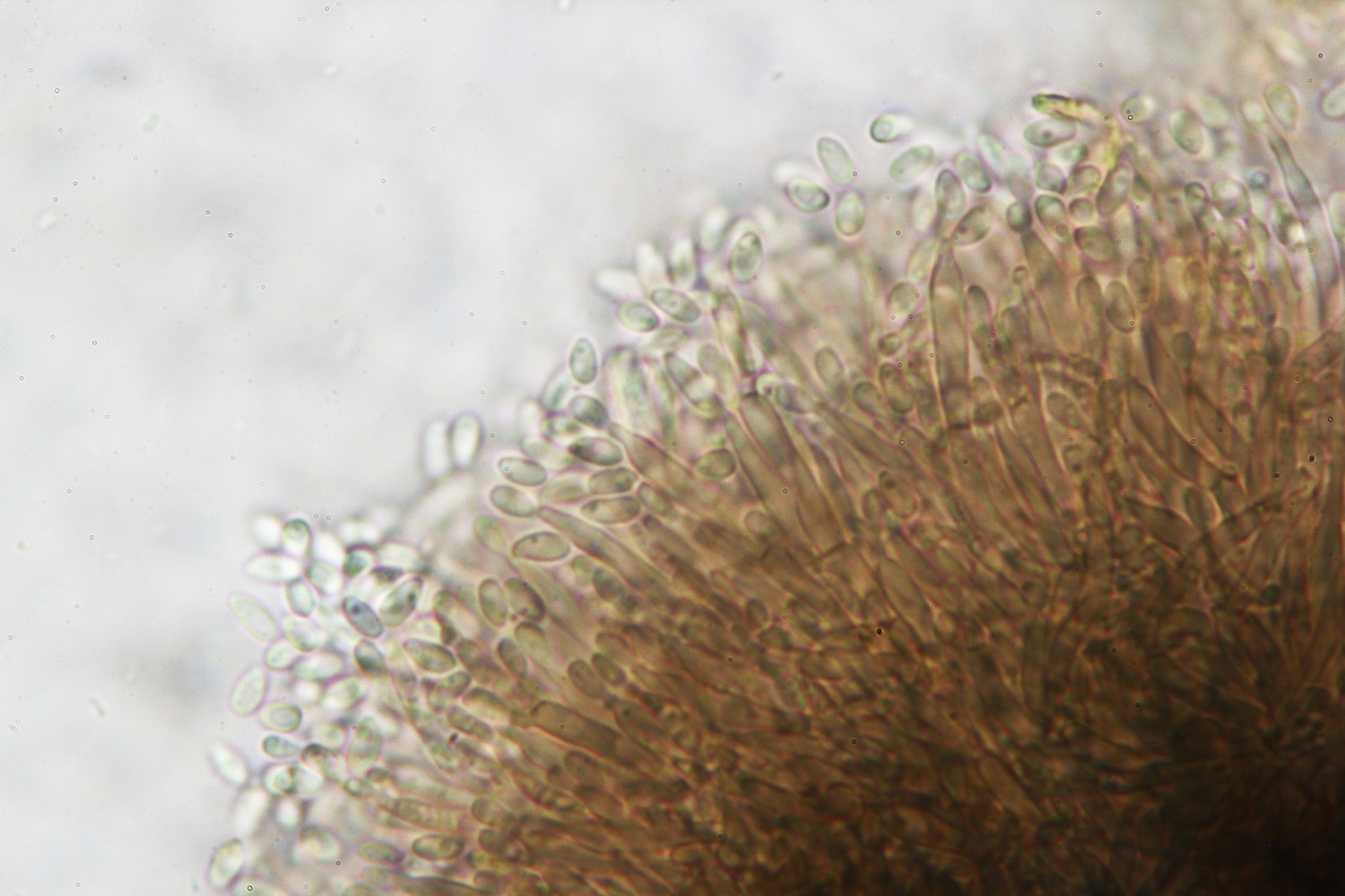 Die angedachte Lasiosphaeria ist hingenen voll mit Konidien, die unseptiert, farblos-hyalin, 6-7 x 1 µm klein und leicht allantoid sind. Die Konidien werden einzeln gebildet, nicht in Ketten. Kennt jemand sowas oder habe ich da keine Chance?