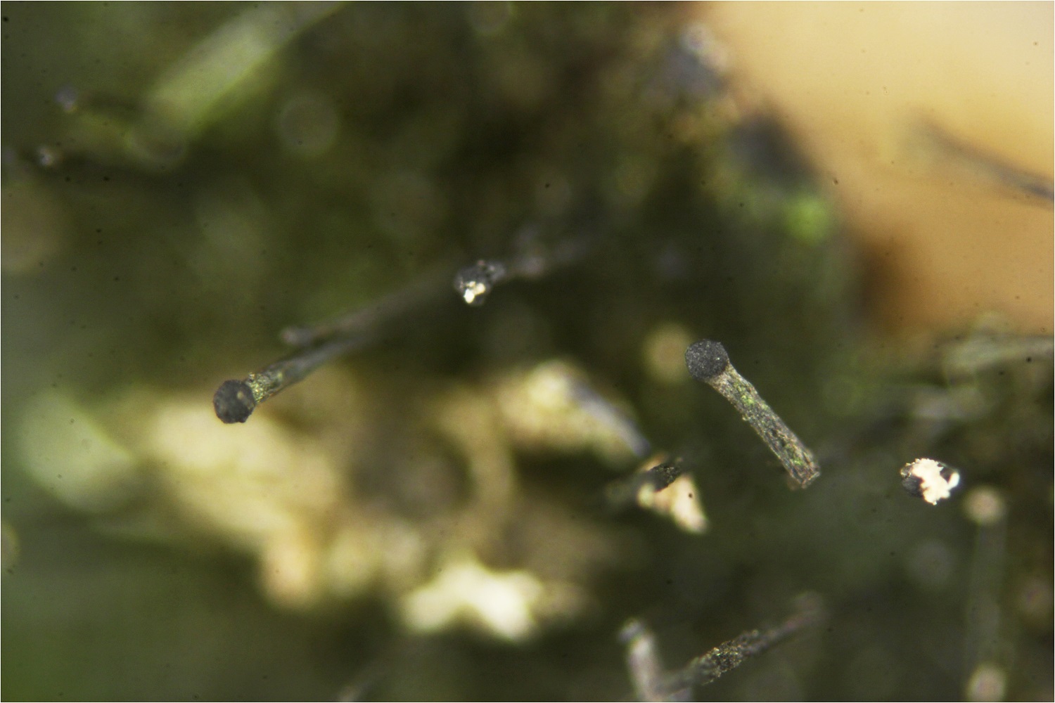 Heute fand ich an Moos, das an einem Ast wuchs, einige kleine gelbe Knübbelchen.