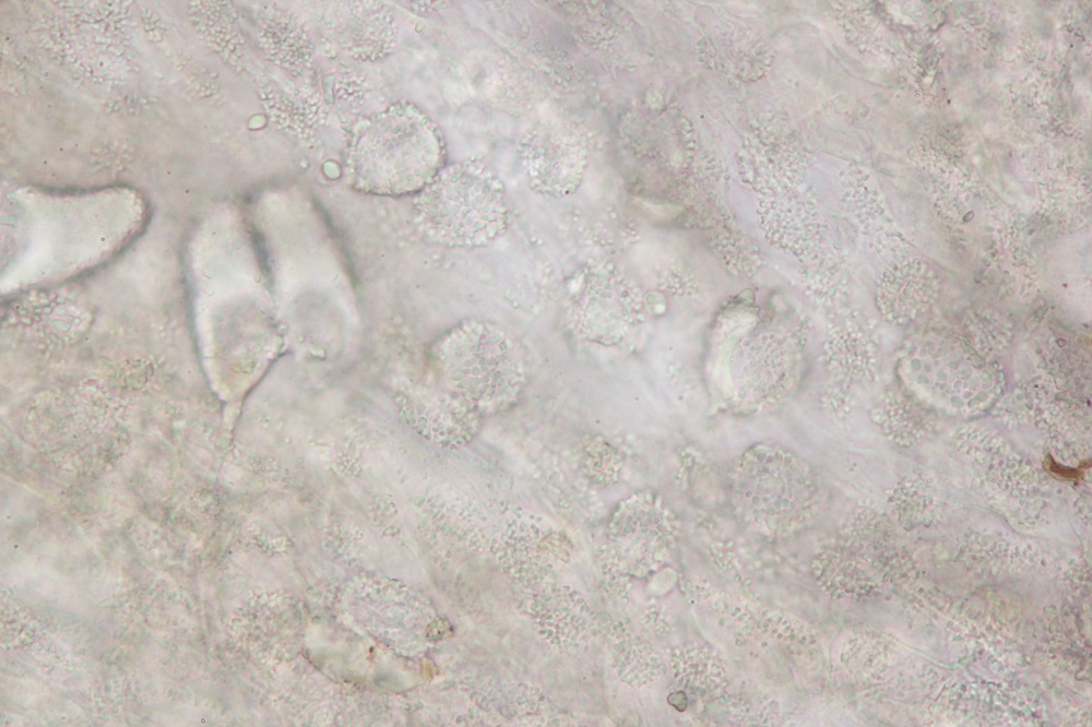 Versuch's doch einfach mal mit dem "Fuß" auf den ersten Bildern, ob du da die richtigen Zystiden findest.