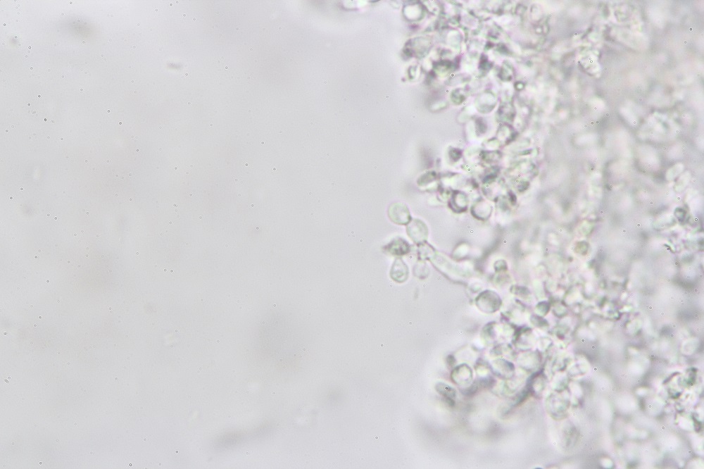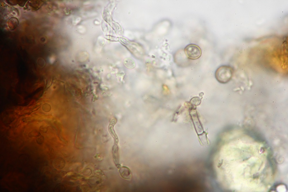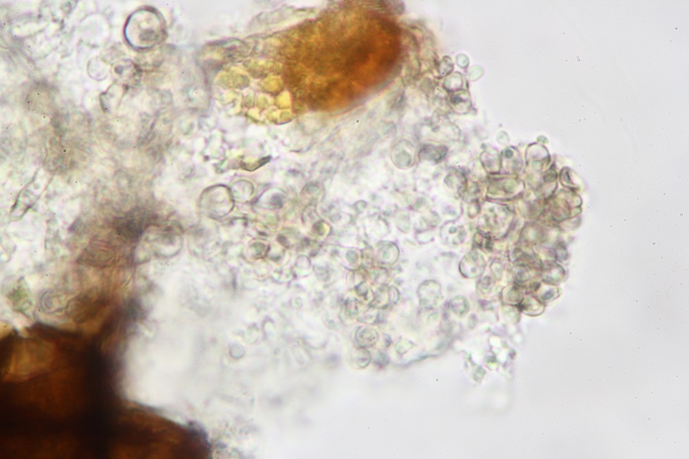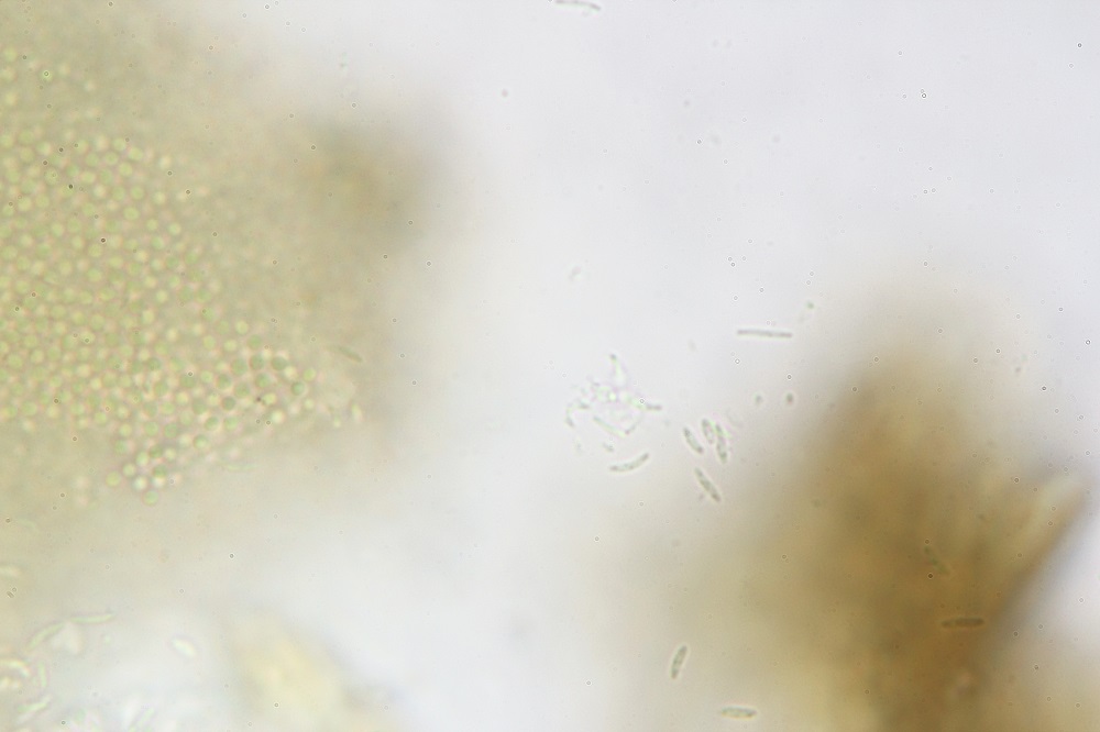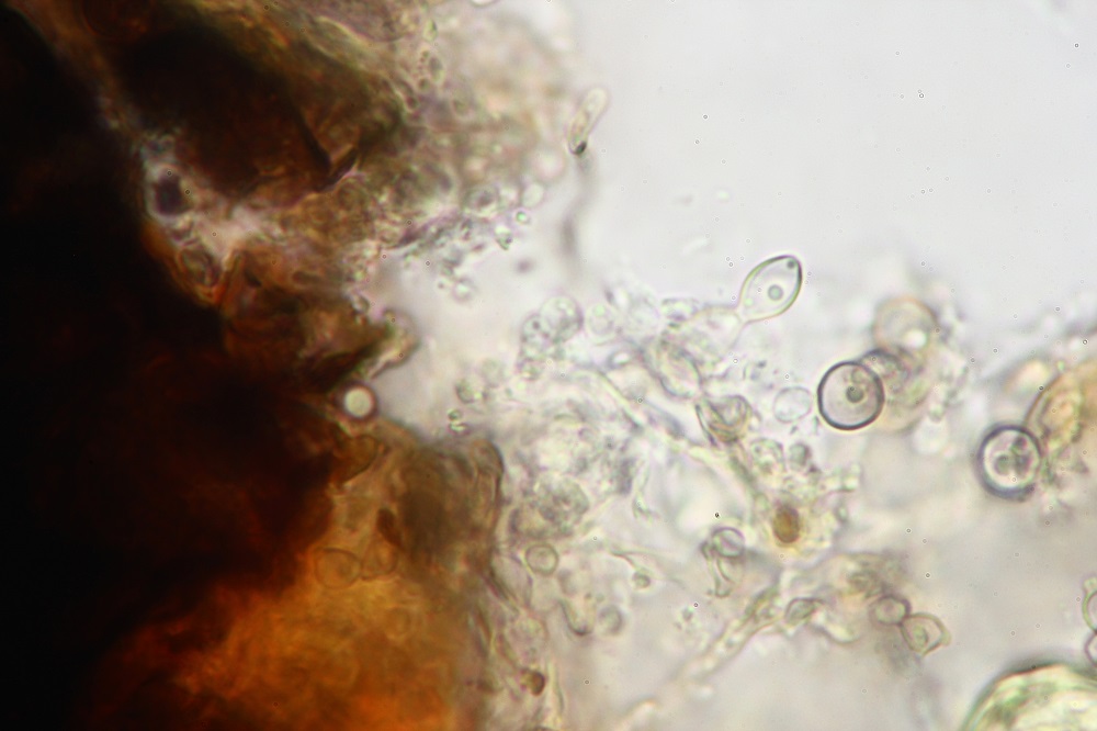 Aber das ganze sieht etwas anders aus, als auf dem Mikrobildern und Skizzen im Internet. Die "Sporen" sind viel zu klein und die "Basidien" sind einfach nicht zusehen.