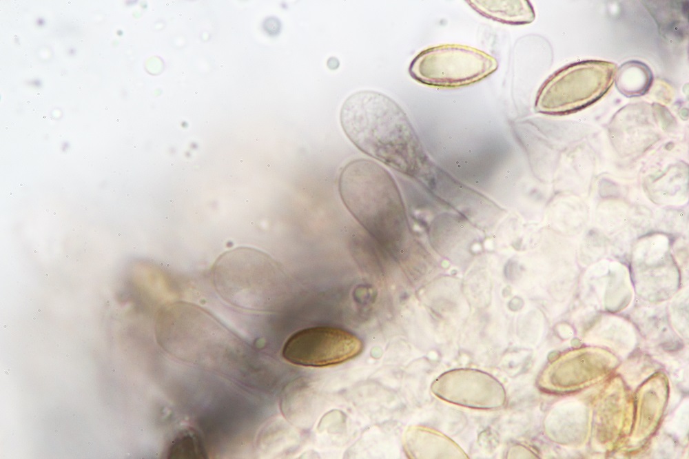 Heute haben mich 2 Pilze fast in den Wahnsinn getrieben. Es gibt Pilze deren Gattung man schon Makroskopisch erkennt und sich bei der Gattung zu 100% sicher ist, aber unter dem Mikro dann überrumpelt wird. Genau das ist mir heute bei einer Vuilleminia passiert. Ich habe mir extra ein Stöckchen mit einer Vuilleminia mitgenommen, den passenden Schlüssel auf Franks Seite herausgesucht und unter dem Mikro nach den Sporen aus diesem Thread gesucht.