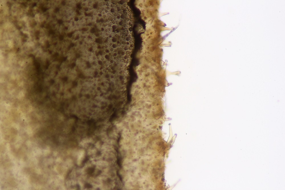 2.Es gibt nur wenige Fotos der Hymenialzystiden, und die sehen nicht einheitlich aus (vgl. Foto 12 gegenüber Foto 3). Könntest du wohl noch ein paar machen, wo man die Form und zwar, das ist wichtig, die überwiegende Form der Zystiden sehen kann?