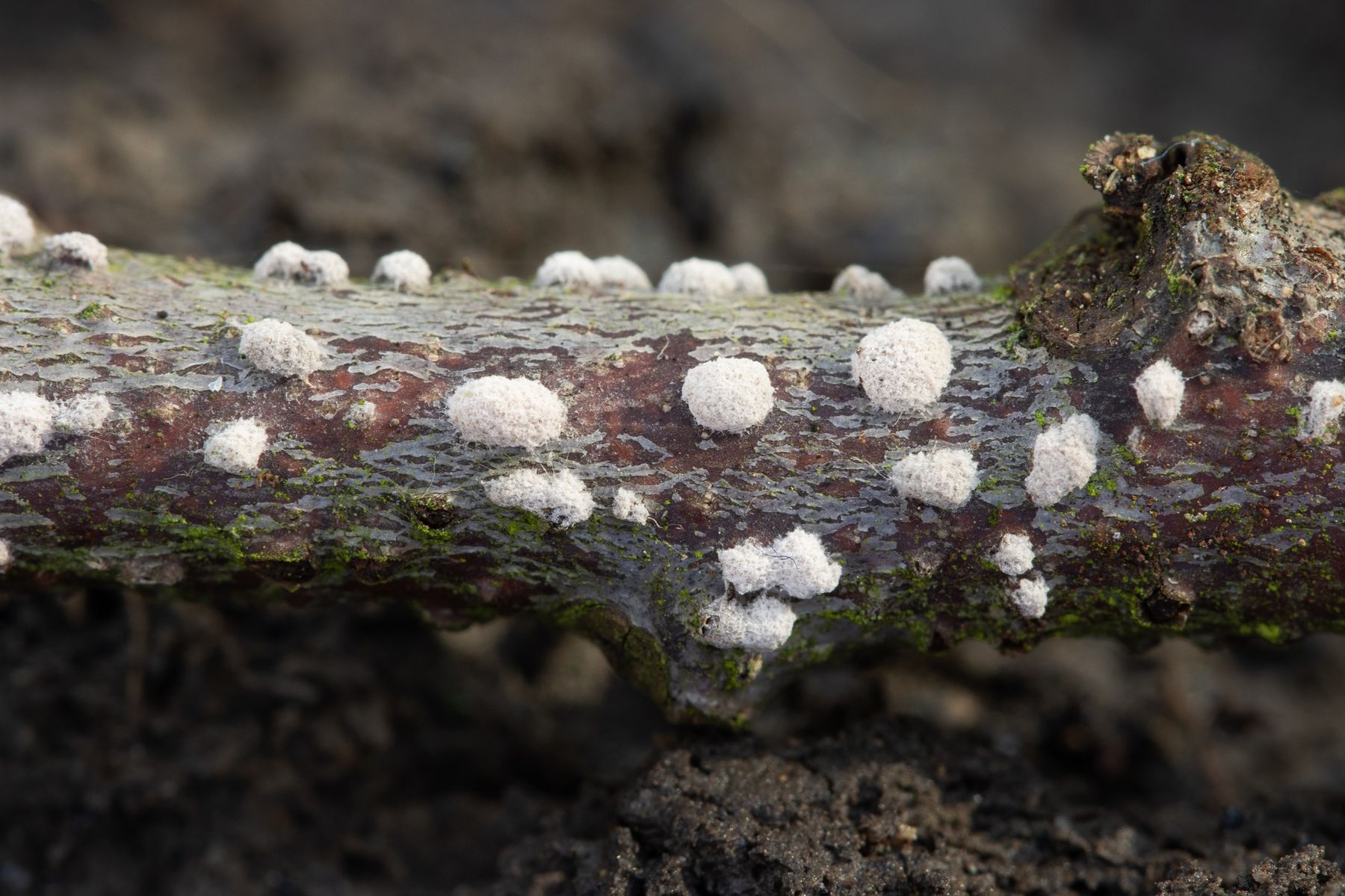 Aber nachdem meine letzten Anfragen ohne Bestimmungserfolg blieben..... Ich bleibe optimistisch! Die braunen Kugeln bitte einfach ignorieren!! Der Pilz wuchs auf Pflanzenmaterial - ist das hilfreich?