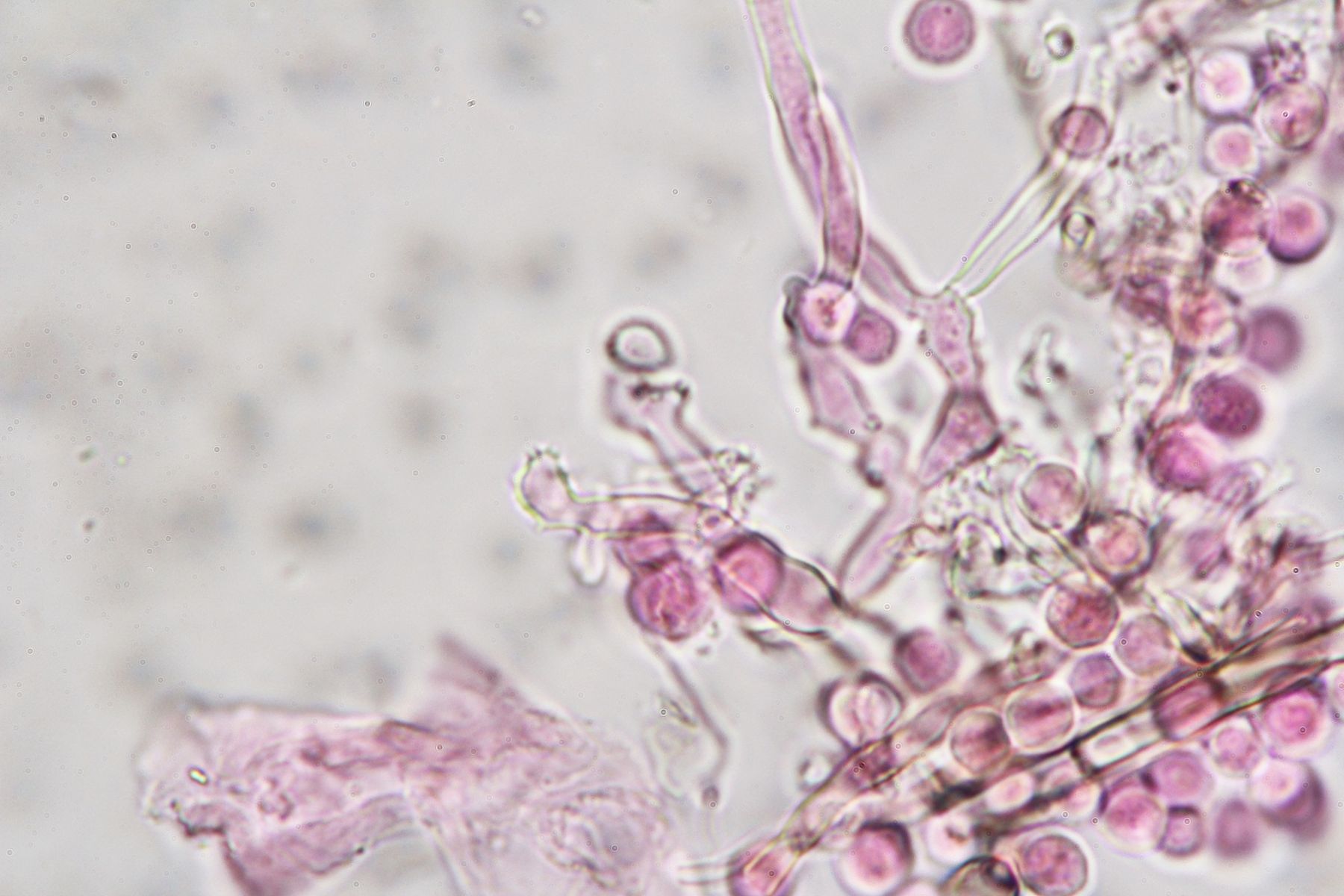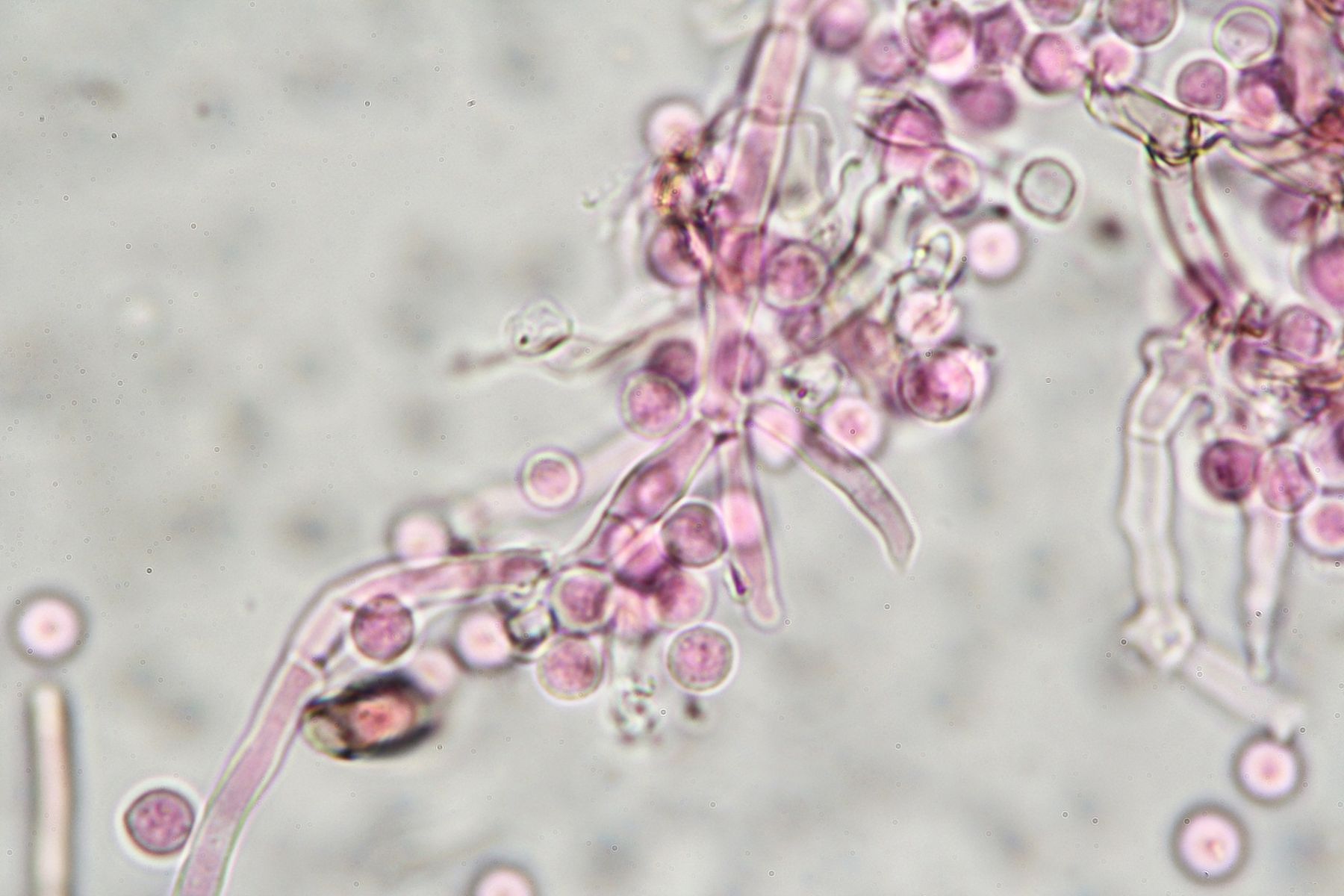 Wenn man die Hansfordia in Wasser mikroskopiert sieht man kaum etwas, sondern meistens nur Konidien.