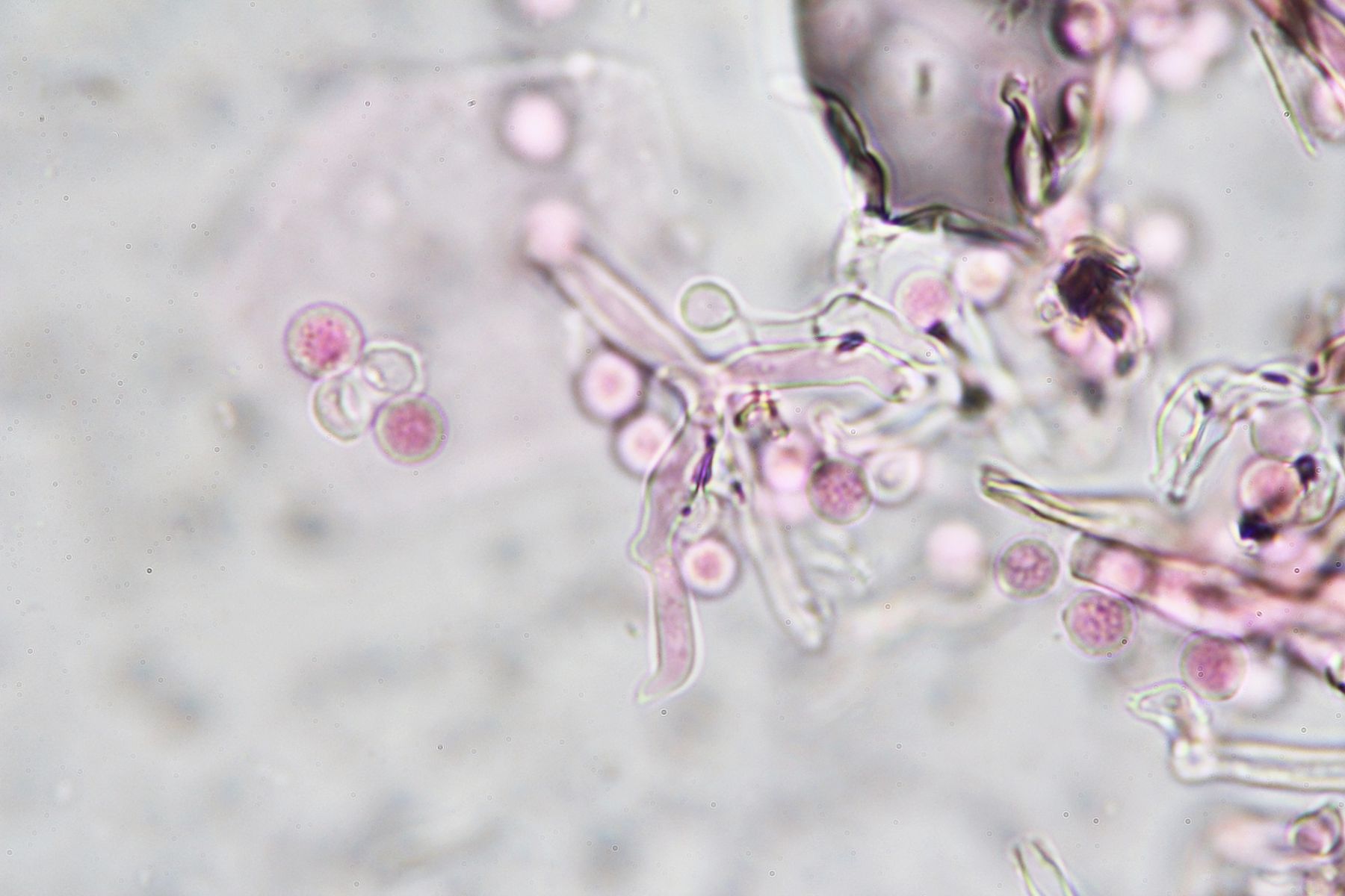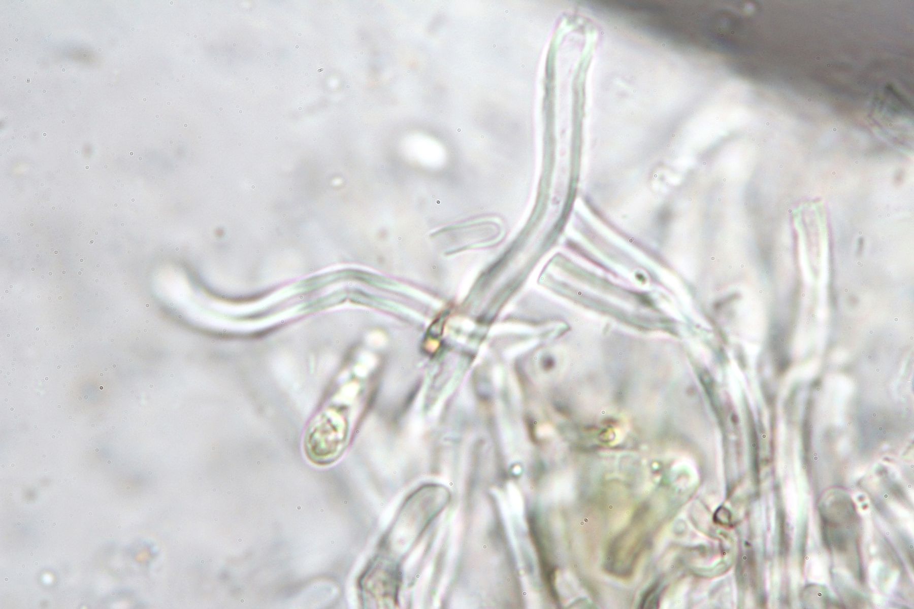 Konntest du Zystiden erkennen ? Denn auf dem ersten Bild sieht es so aus, dass Zystiden vorhanden sind, was du Mikroskopisch bestätigen müsstest.