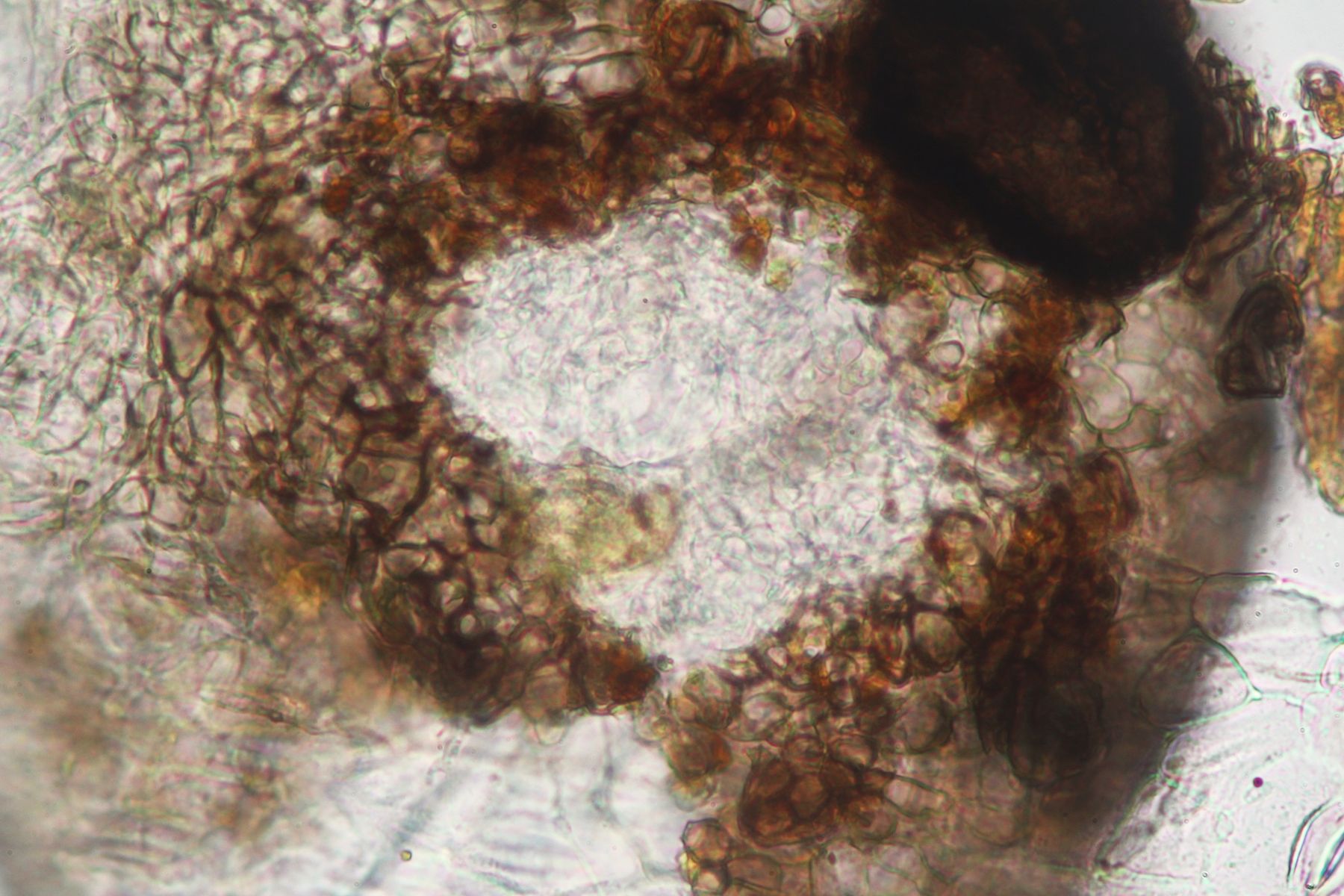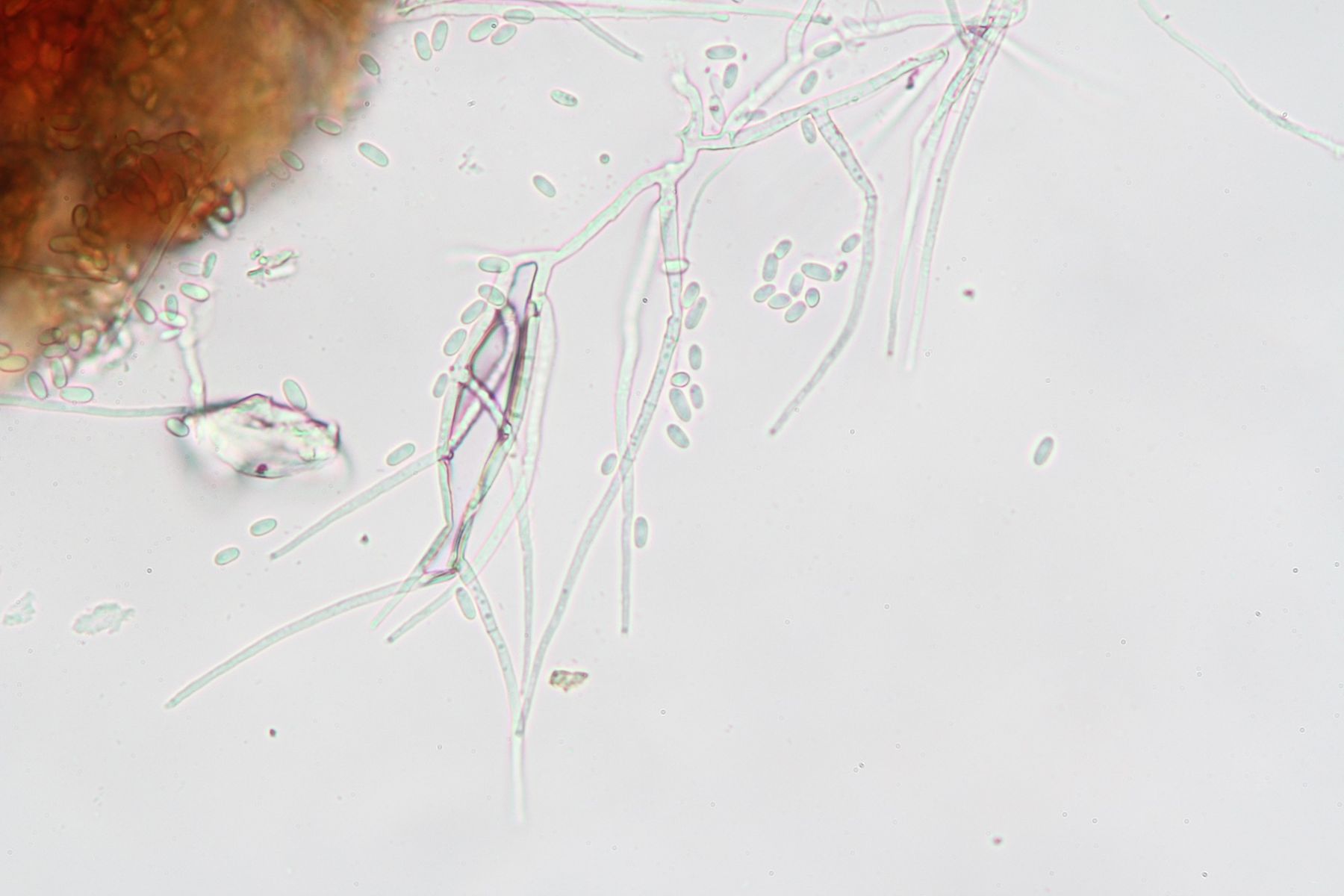 2. Hier sieht man die Myxarium podlachicum mit Sporen und Zystide.