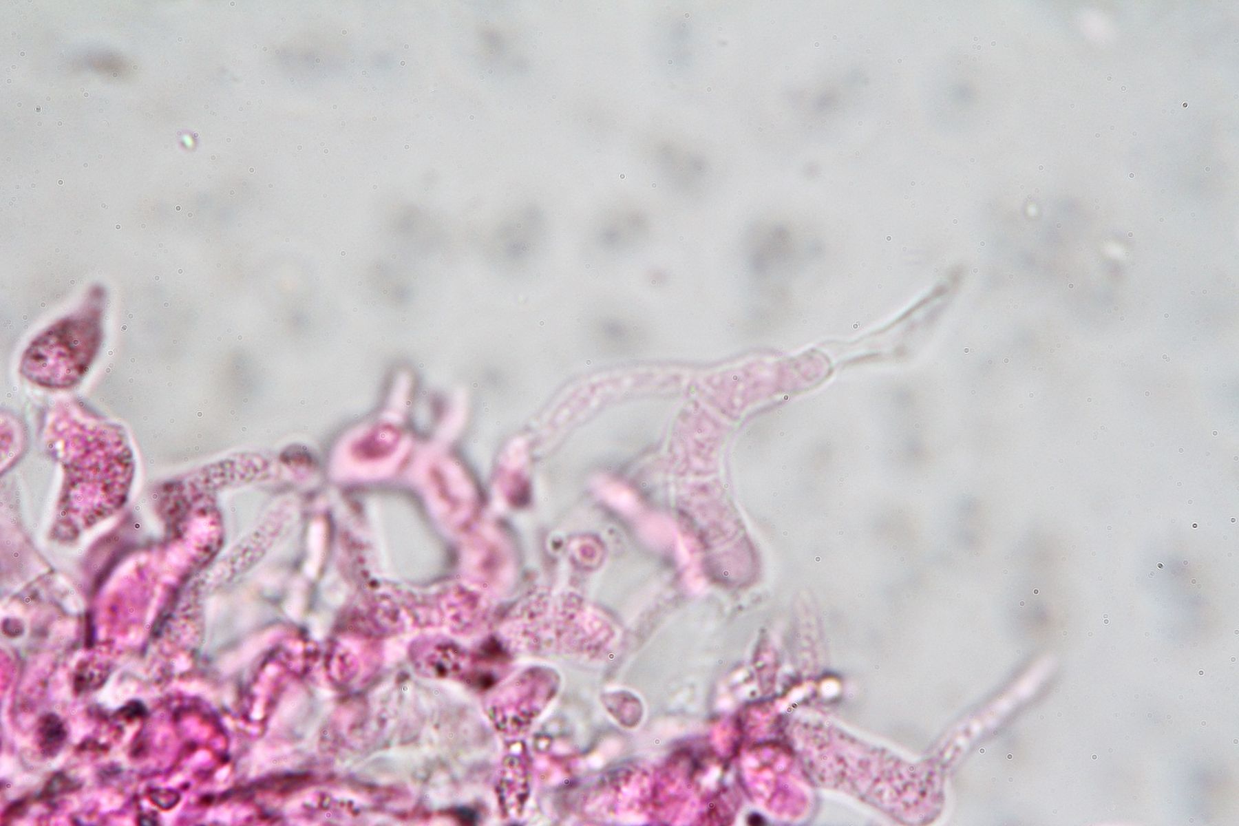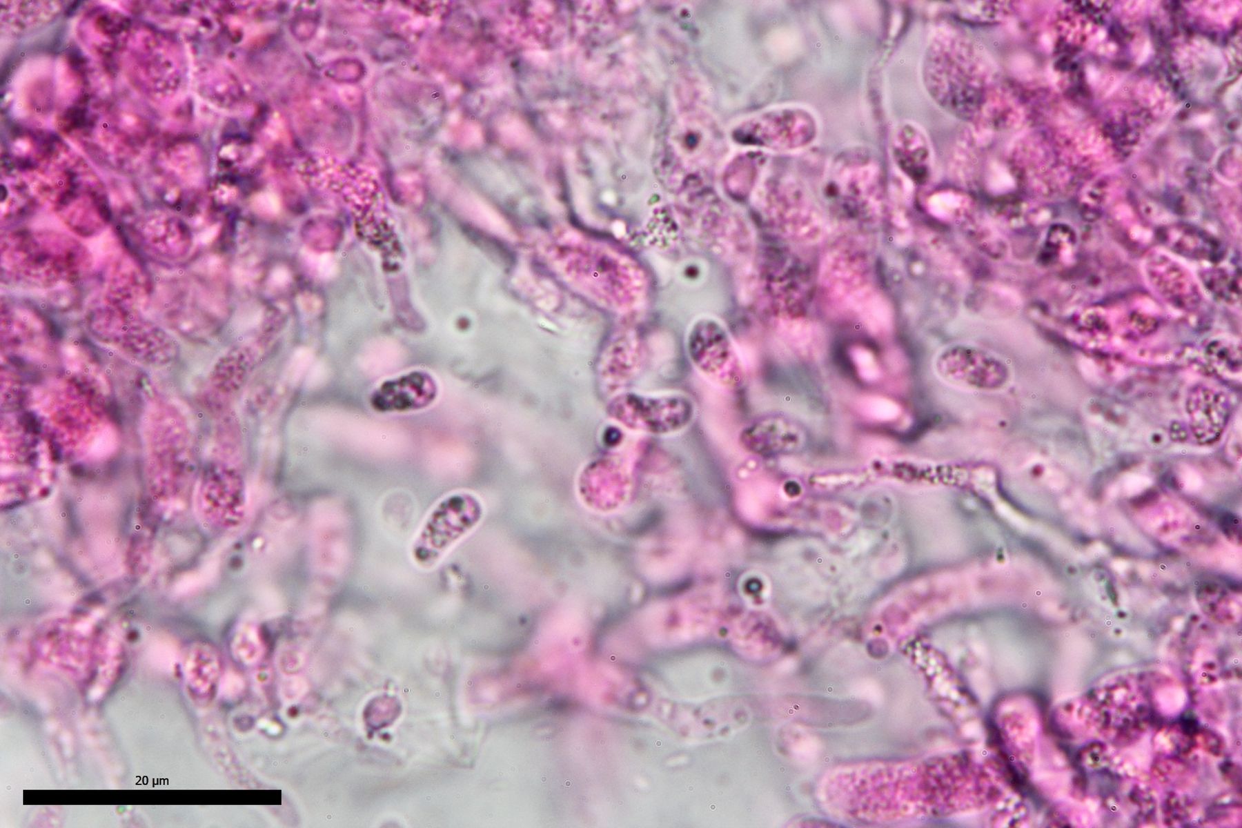 Die Sporen sehen wie die von einer Tomentella oder Entoloma aus, was mich sehr stutzig gemacht hat.