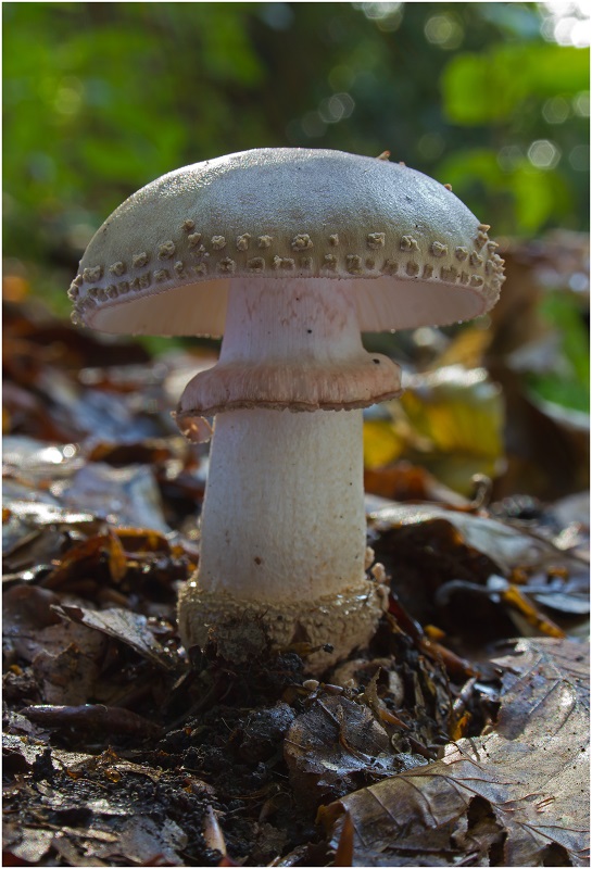 Der Grund warum ich ihn hier reinstelle ist der, weil ich erst an einem Perlpilz dachte, aber die Anreihung der grauen Punkte am Pilzrand haben mich irritiert.