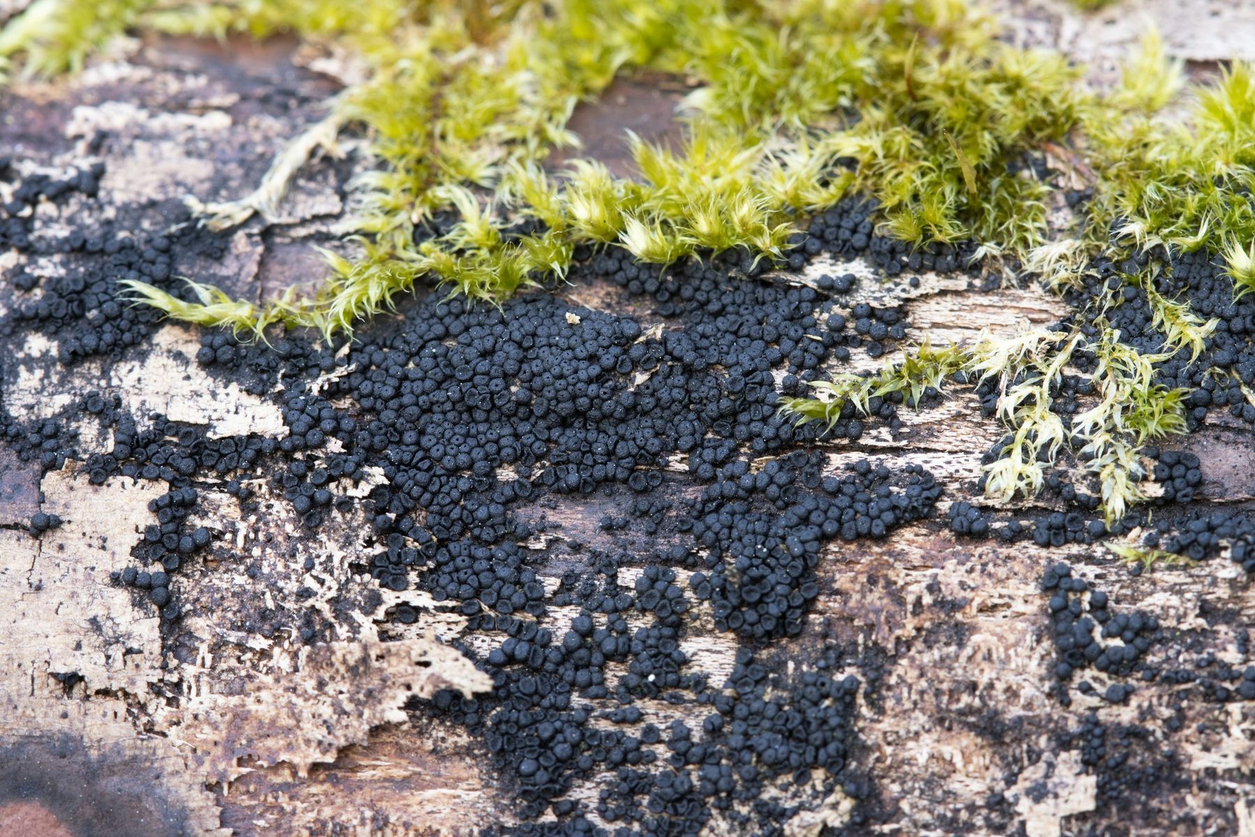 Das Substrat war ein liegender Ast von einer Buche (Fagus).