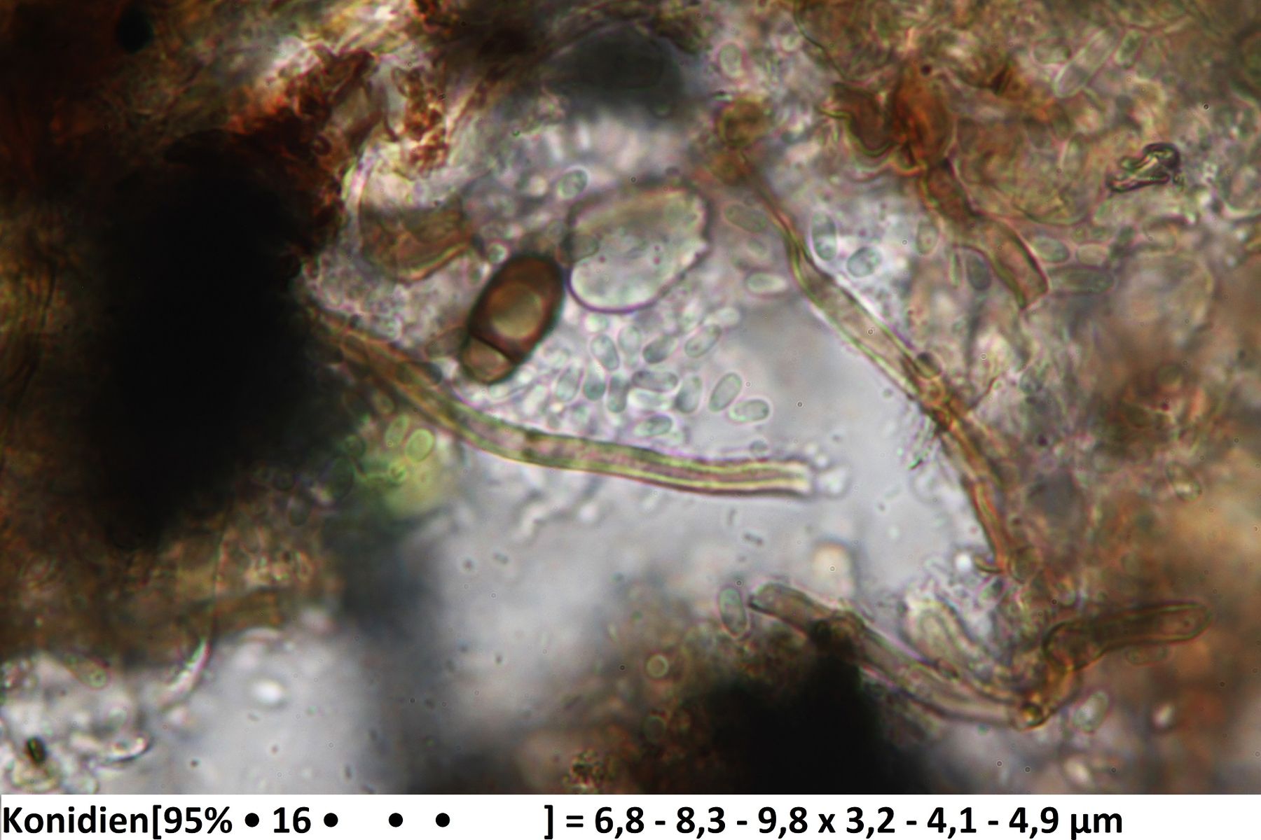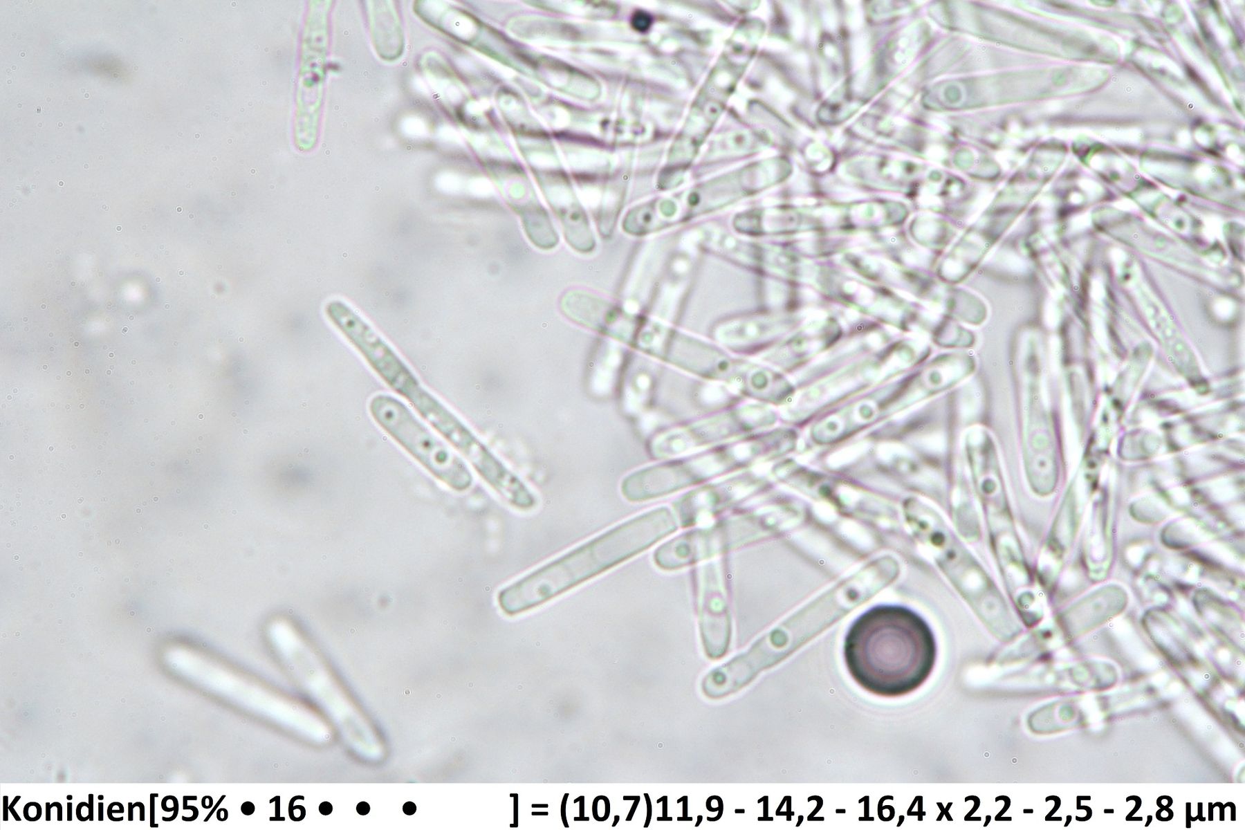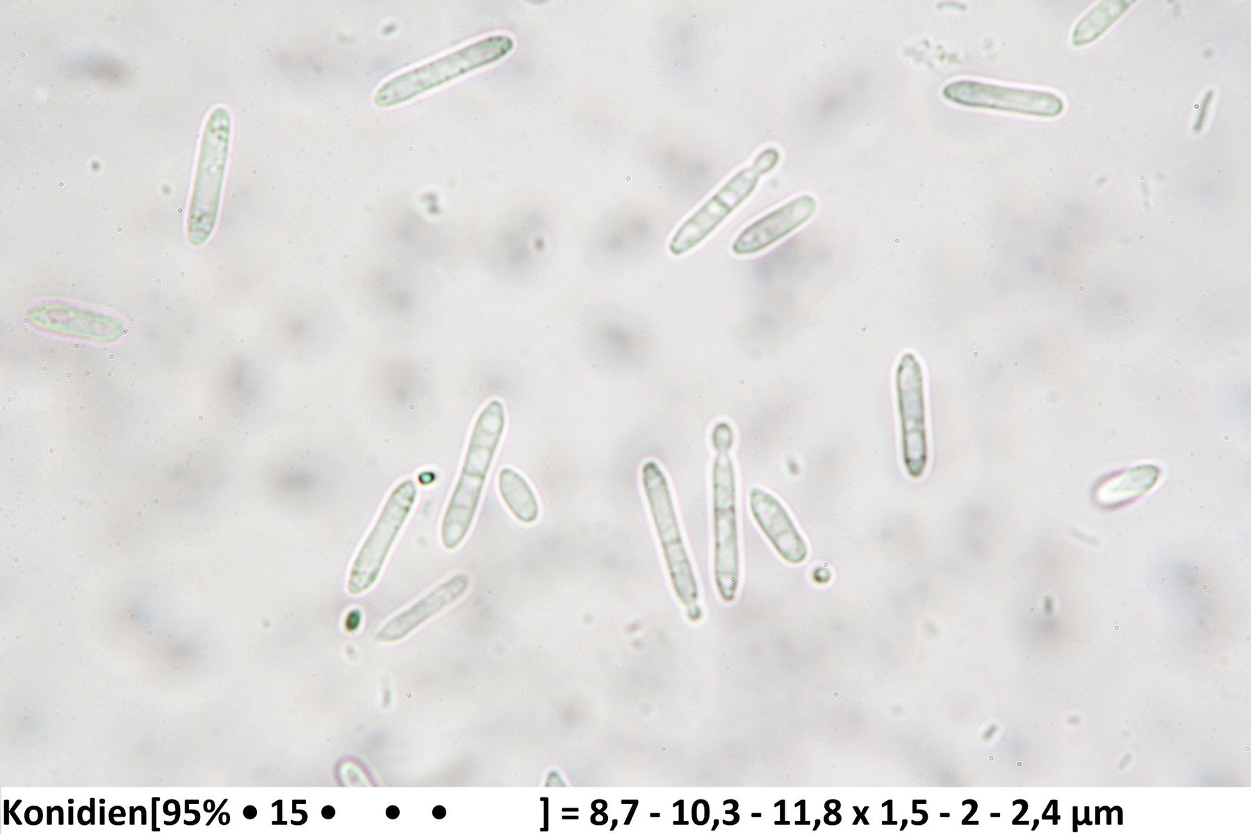 Was noch fehlt sind die Konidien, da spielt die Form und auch die Größe eine wichtige Rolle.