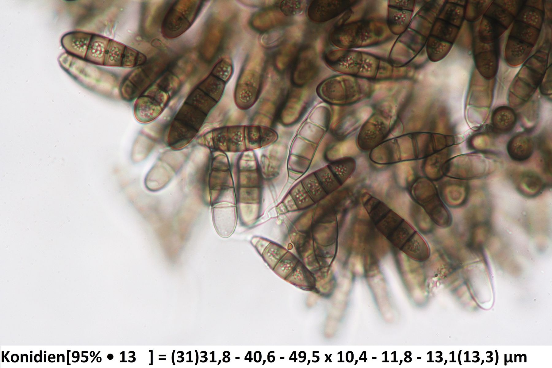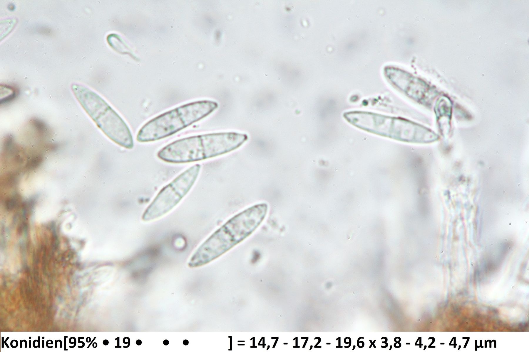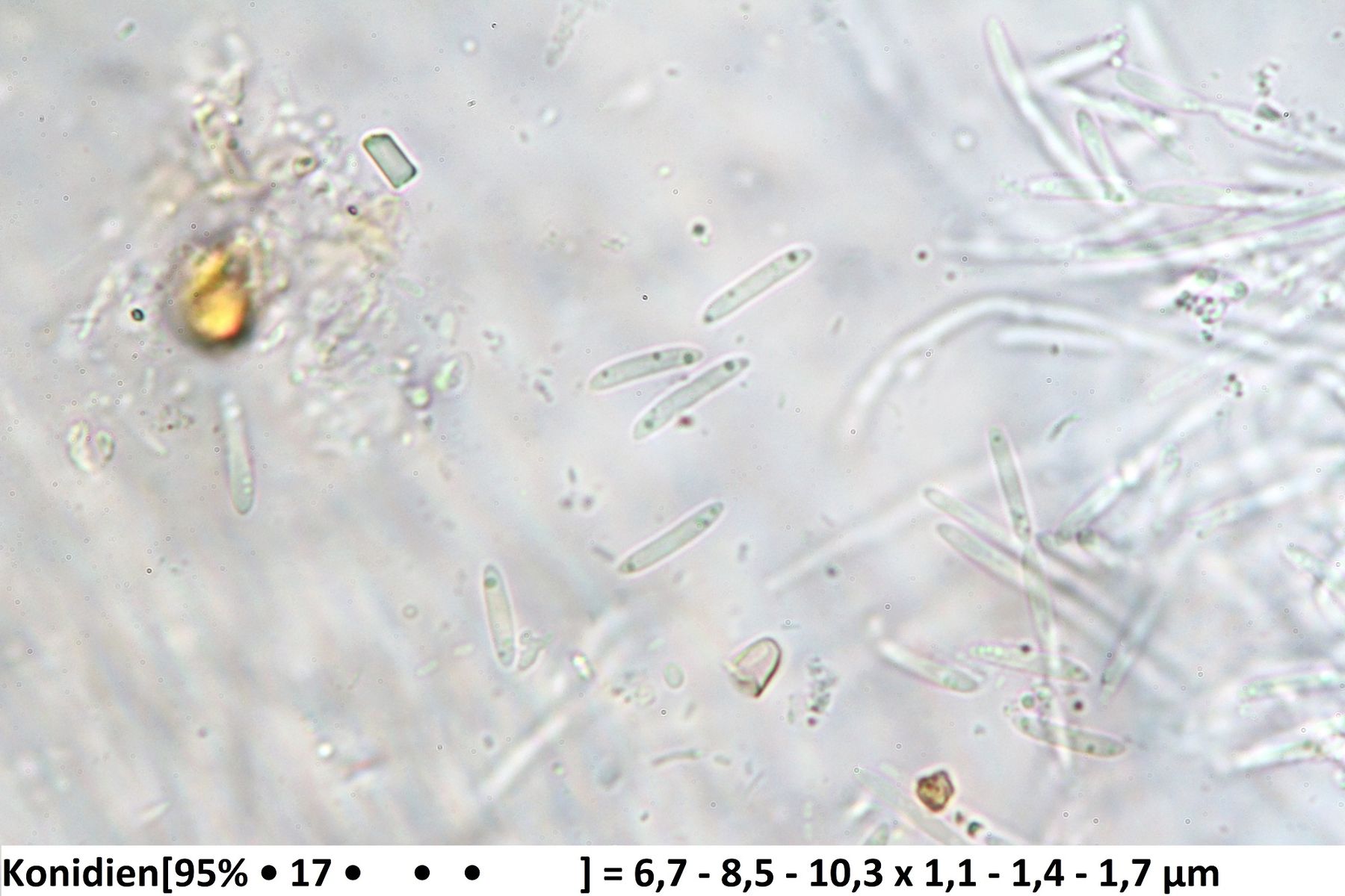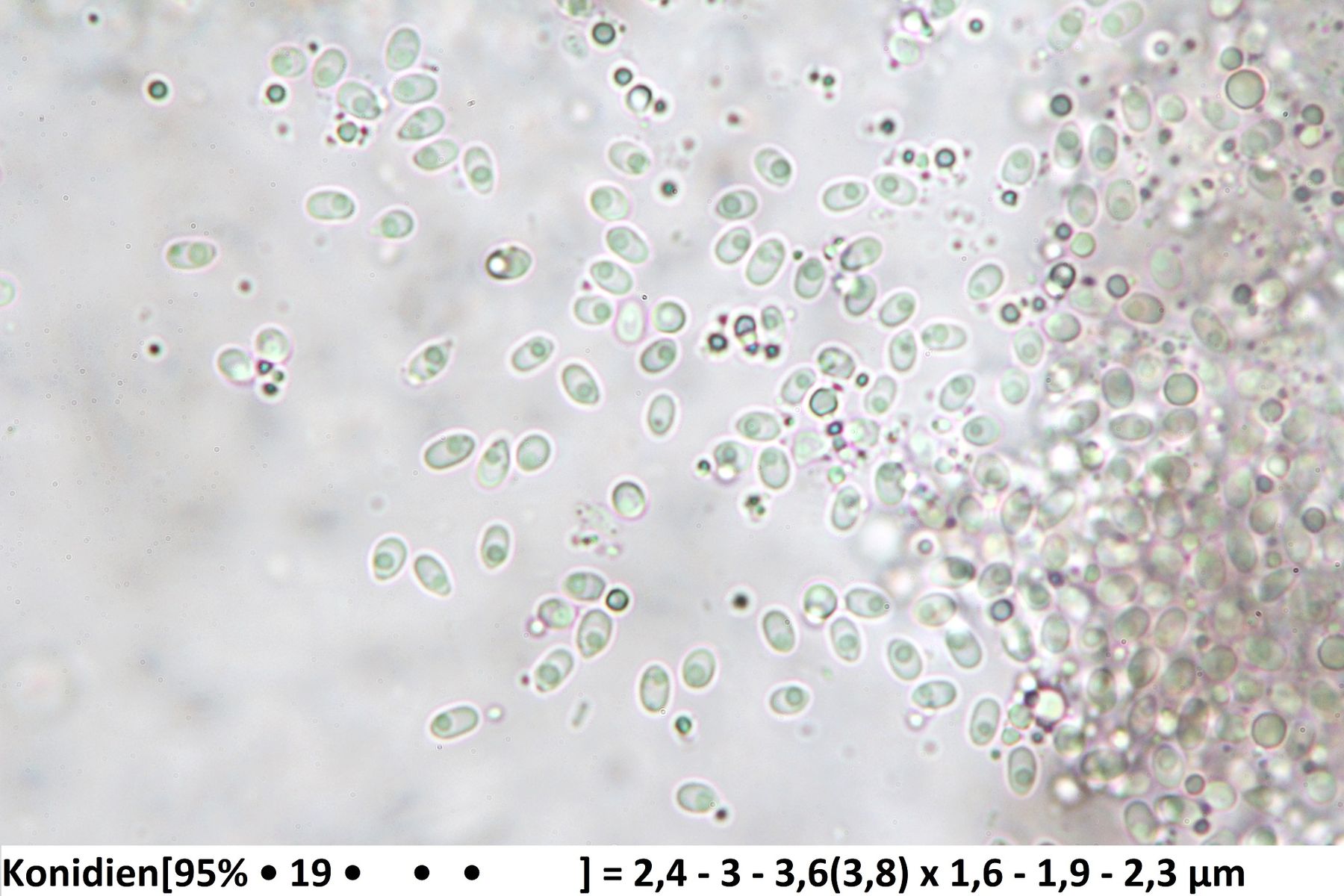 Was noch fehlt sind die Konidien, da spielt die Form und auch die Größe eine wichtige Rolle.
