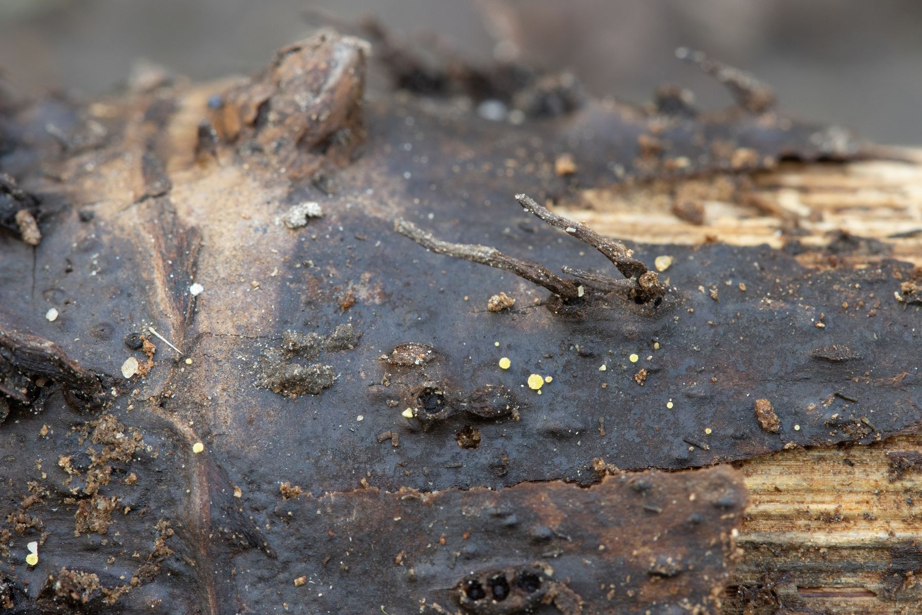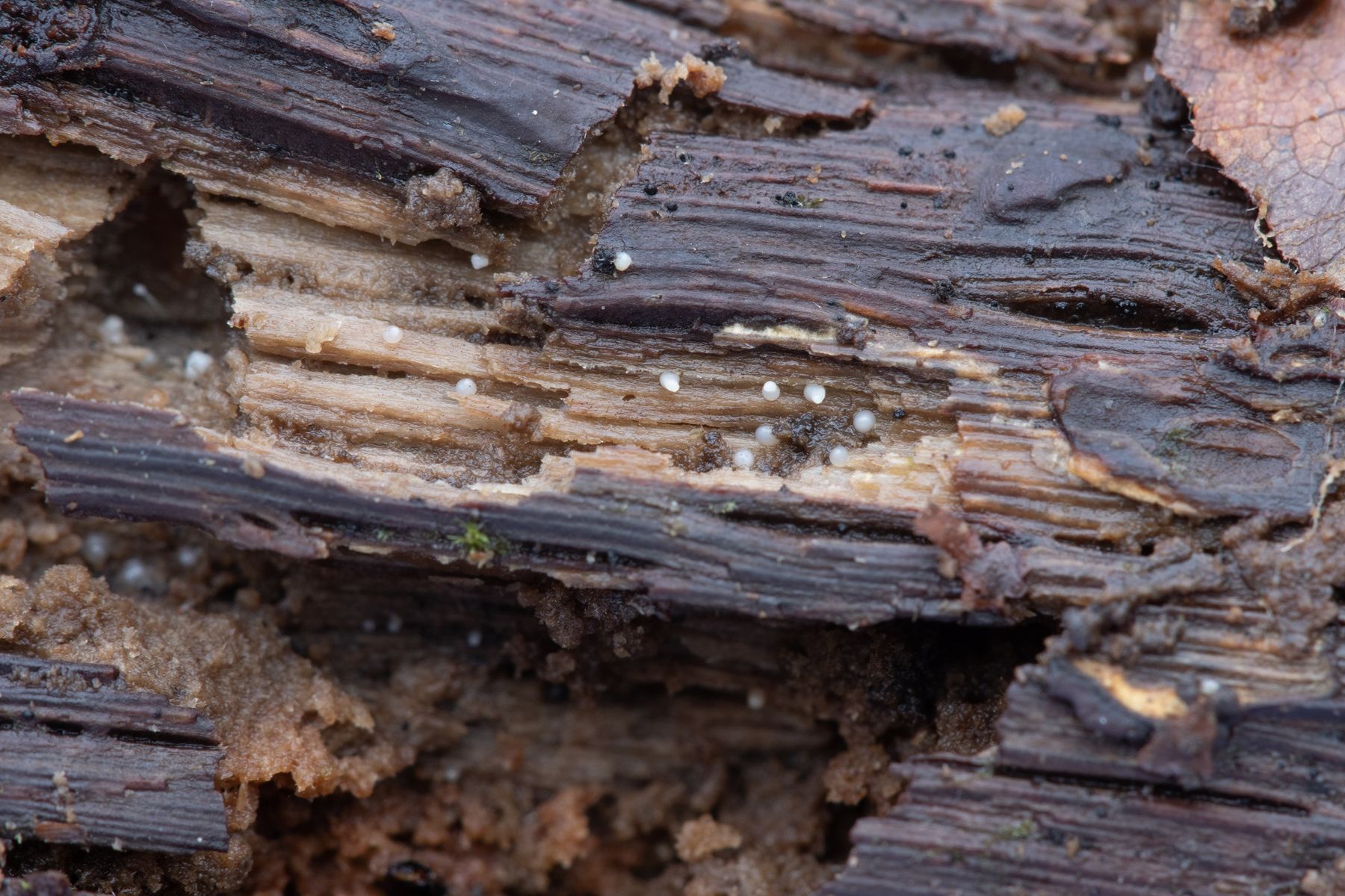 Das Substrat war ein verrotteter Ast von einer Buche (Fagus).